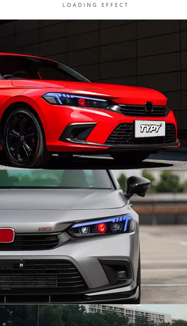 Подходит для 22-25 фар Civic 11-го поколения в сборе с модифицированными светодиодными линзами RGB дневных ходовых огней, стримера рулевого управления