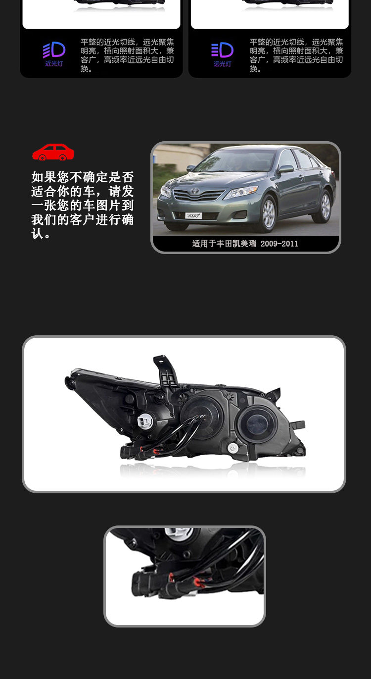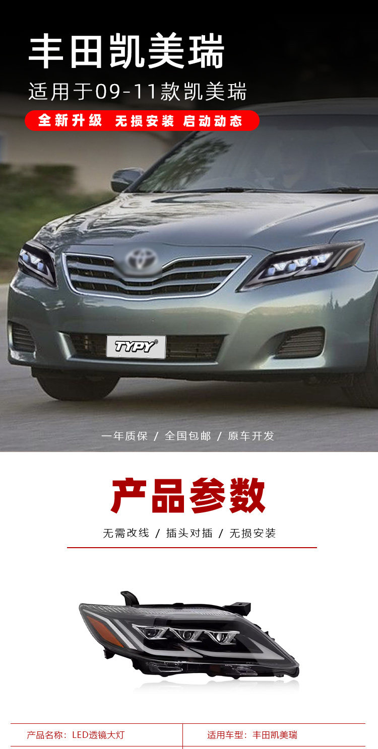 Подходит для Toyota Camry 09-11, версия США, фара в сборе, модифицированная светодиодная линза, дневные ходовые огни, стример рулевого управления