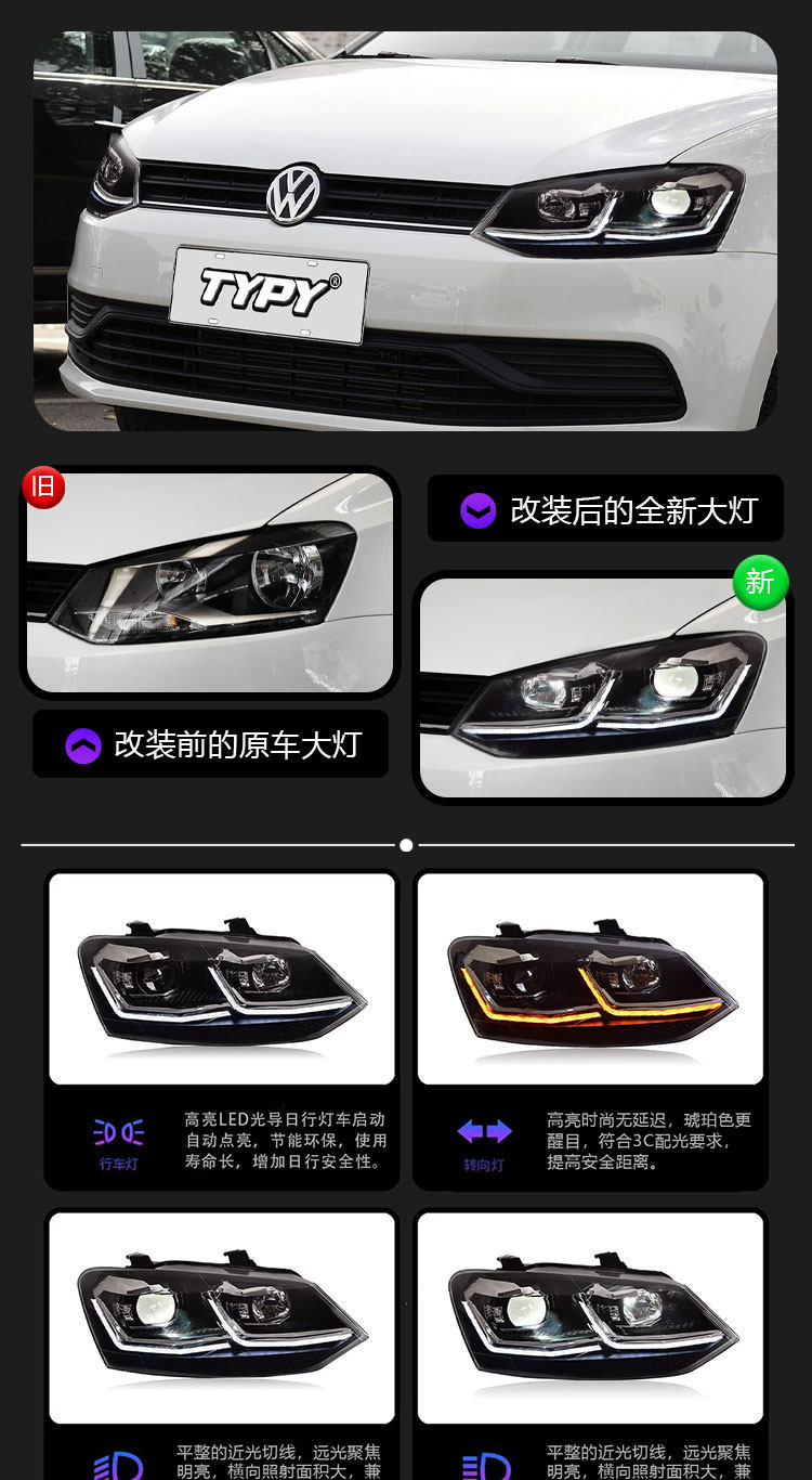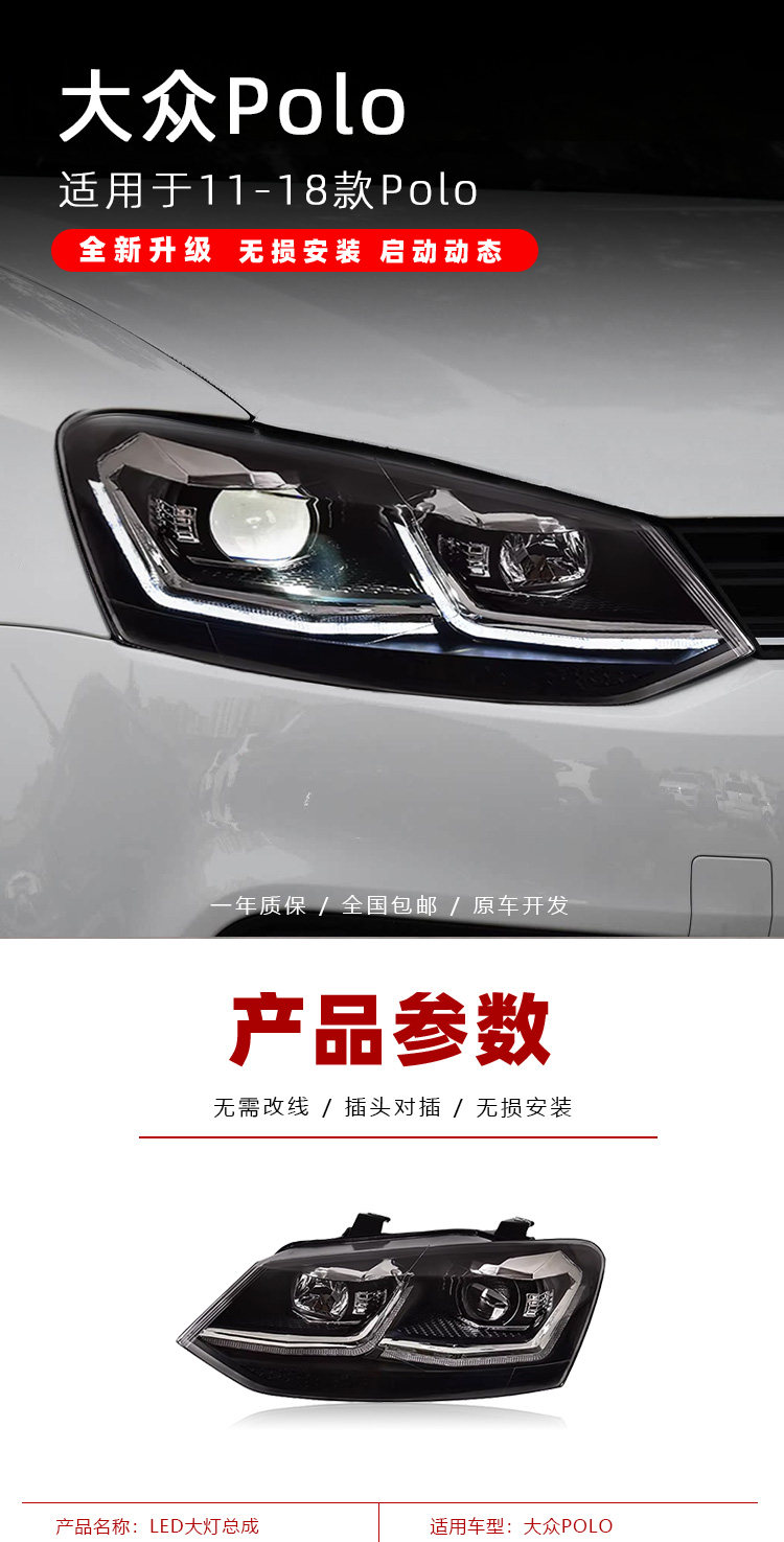 Подходит для 11-18 Volkswagen POLO фара в сборе Polo модифицированная светодиодная линза фара дневного света указатель поворота