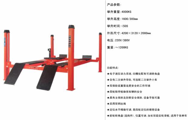 Автомобильный четырехстоечный подъемник, 4-тонный подъемник, дополнительный вторичный подъемник, четырехколесный подъемник, оборудование для технического обслуживания автомобилей.