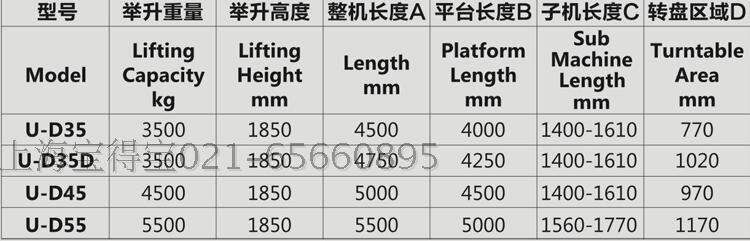 Фабрика прямой продажи Baodebao 5,5-тонно-тон-сдвиговый полной позиционирование Lift U-D55 Длинная таблетка 5 метров Большой сдвиг