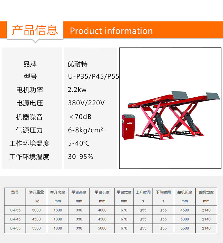 Подлинный лифт для ремонта автомобиля с плоским подъемом подлинного подъема Shanghai U-P35 U-P35