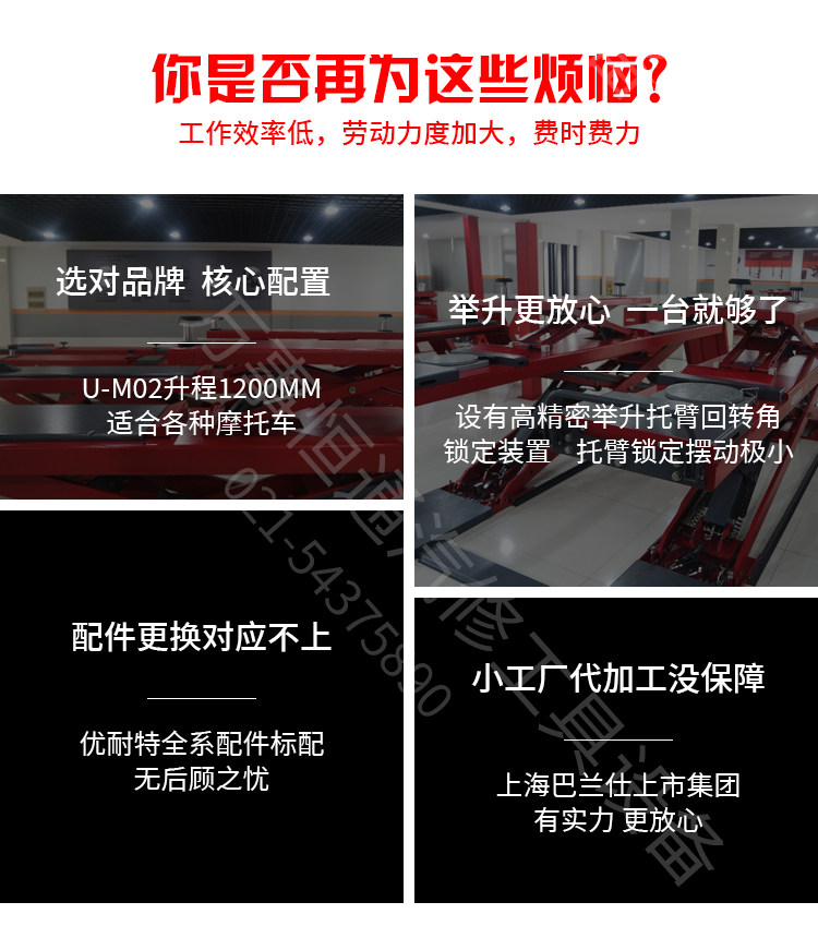 Подлинный мотоцикл Shanghai U-M02 поднимает лифт для легкого обслуживания и безопасного и безопасного