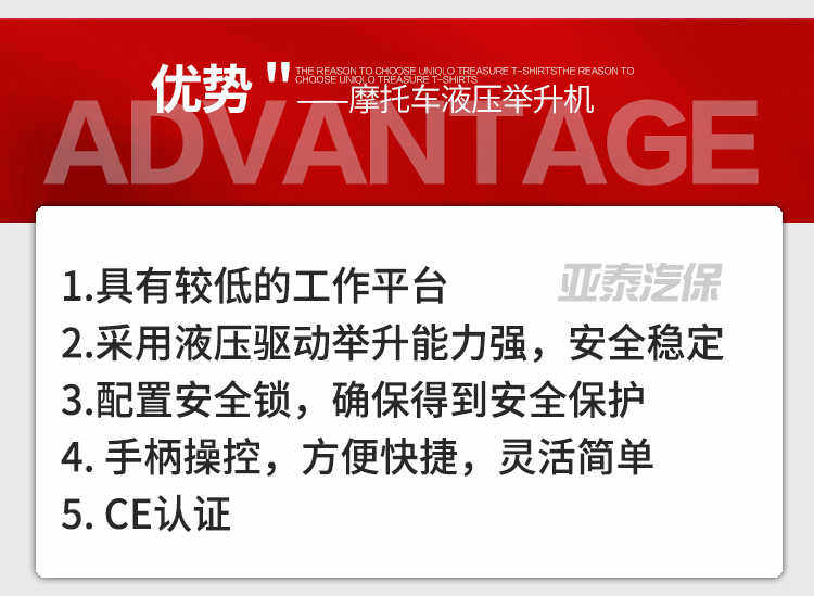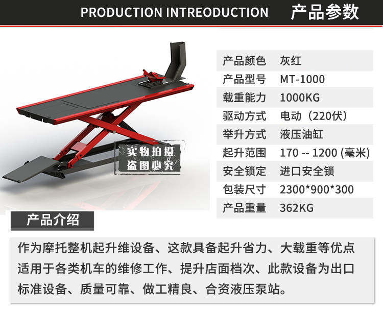 Большое смещение мотоцикл Электрическое обслуживание сдвига Униграющее подъемное подъемник Гидравлический подъемник Kither рама Mt2000