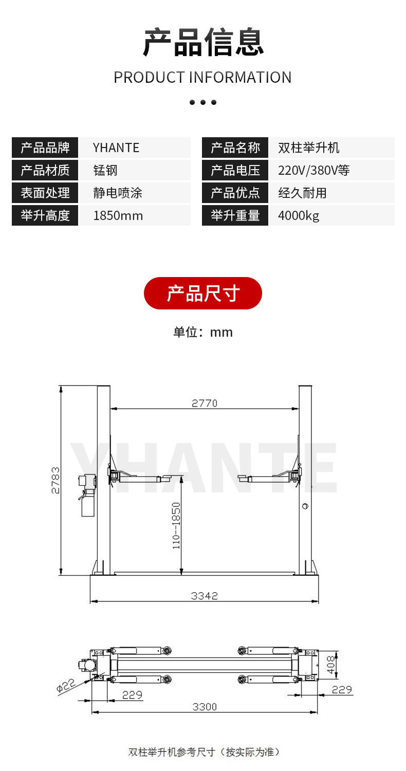 Автомобильный лифт 4 тонны 1,8 метра двойной пирог подъема подъемника Дракон ворота Два -пирожки 4S оборудование для технического обслуживания