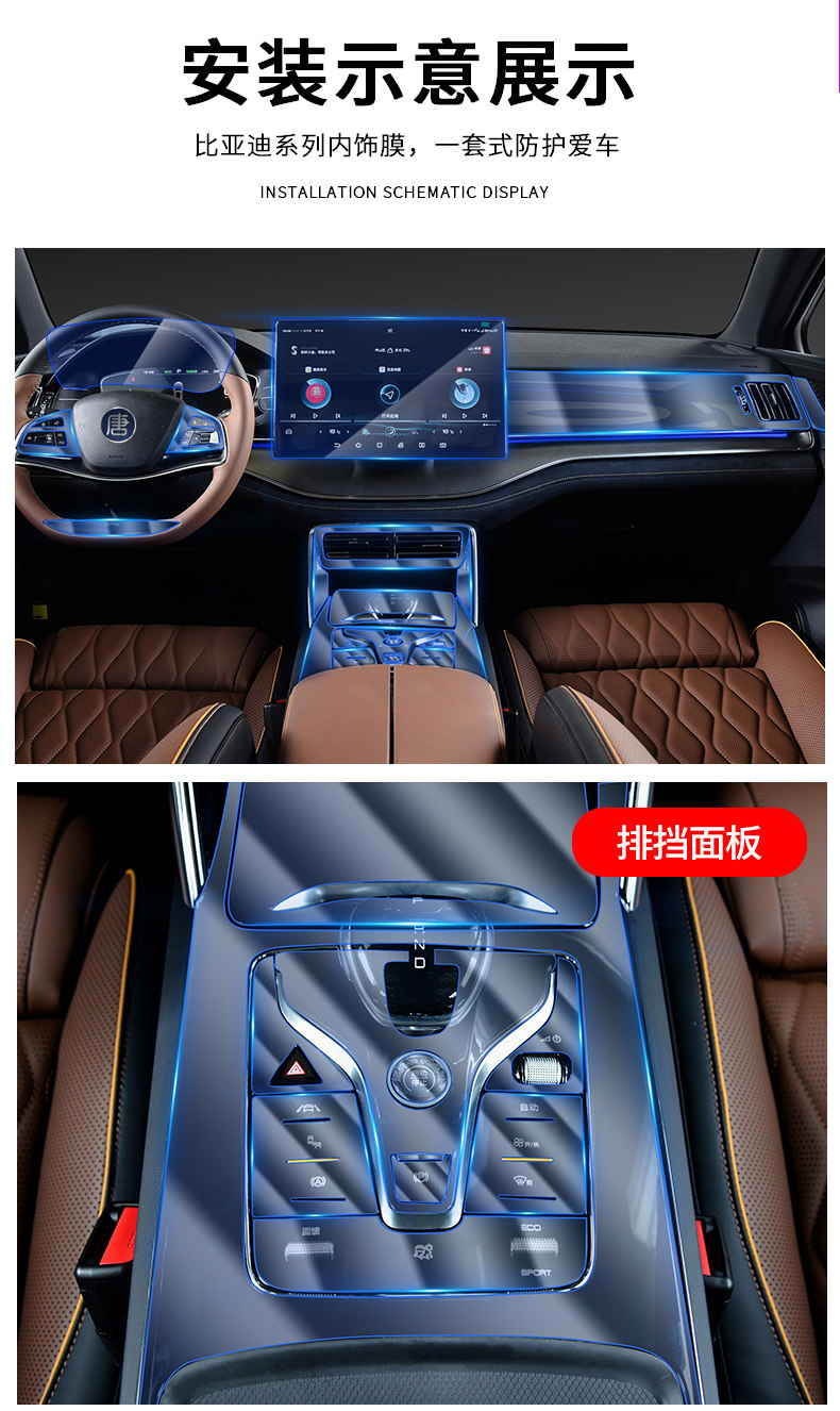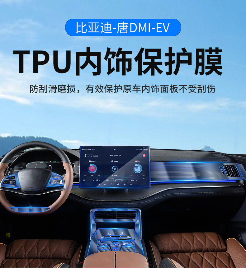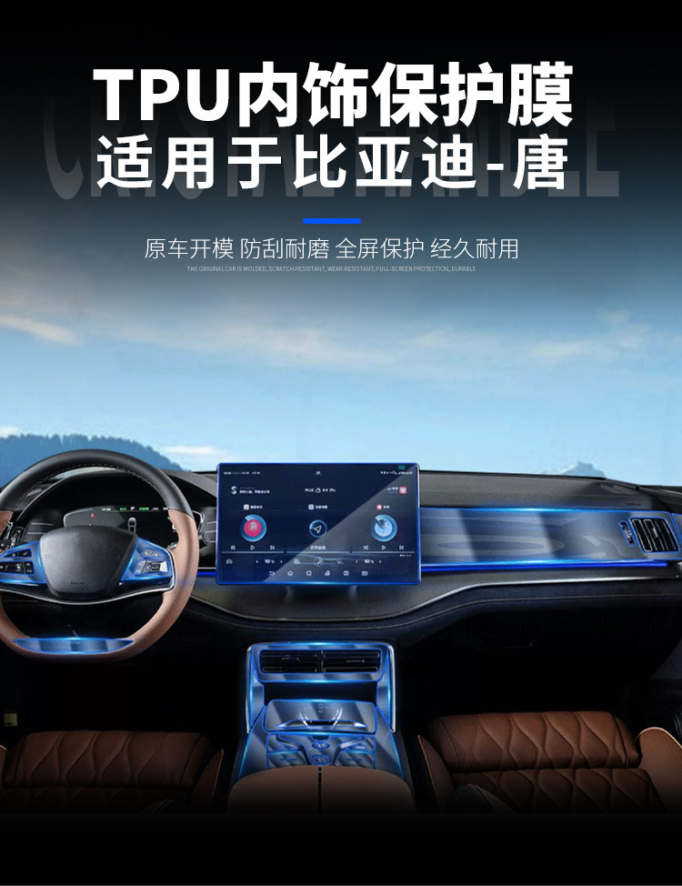 22 BYD TANG EV/DMP/DMI Интерьер TPU Мембранный щит щит царапин -резистентная стальная стальная защитная мембрана, основанная