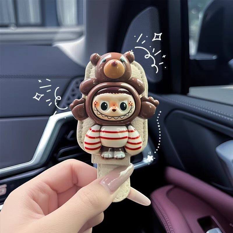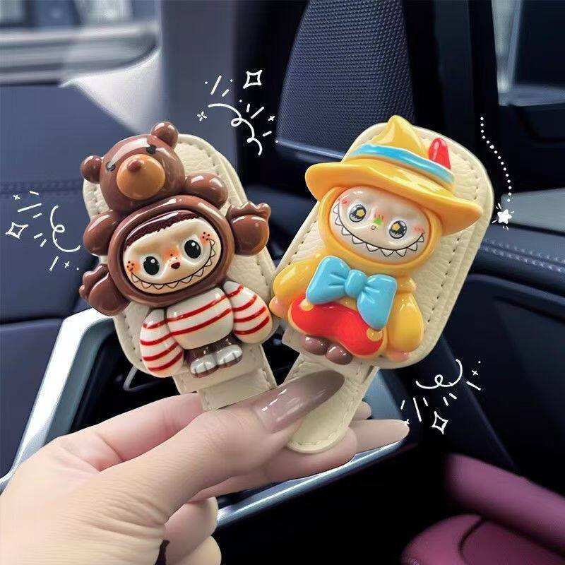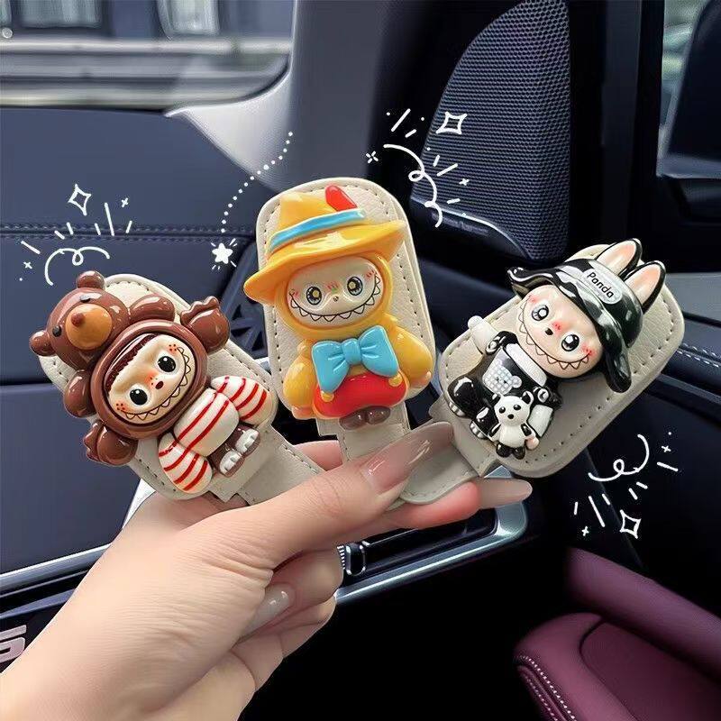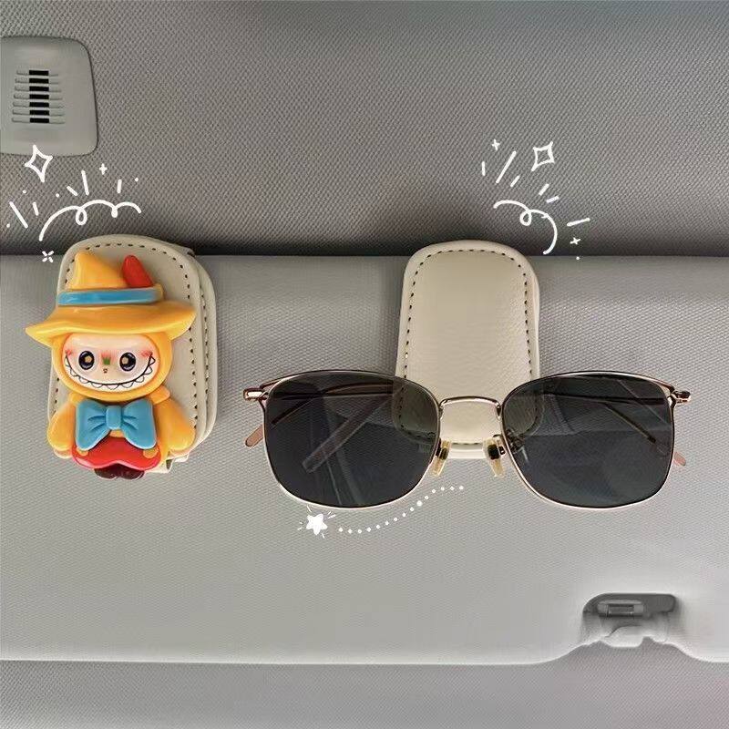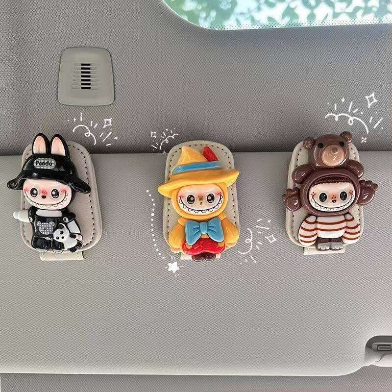 Магнитный зажим для автомобильных очков Labubu, зажим для хранения автомобильного солнцезащитного козырька, оправа для очков, зажим для автомобильных солнцезащитных очков с героями мультфильмов