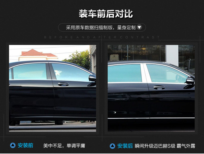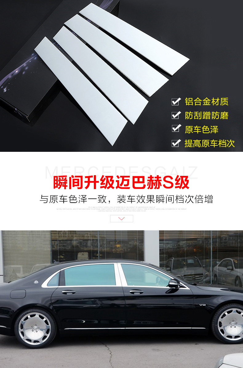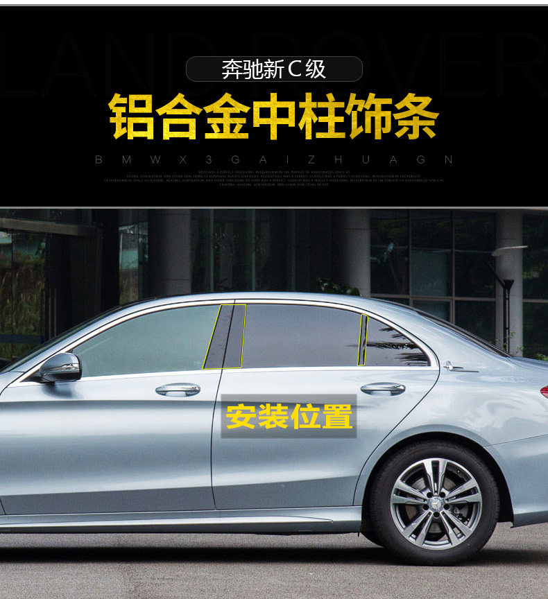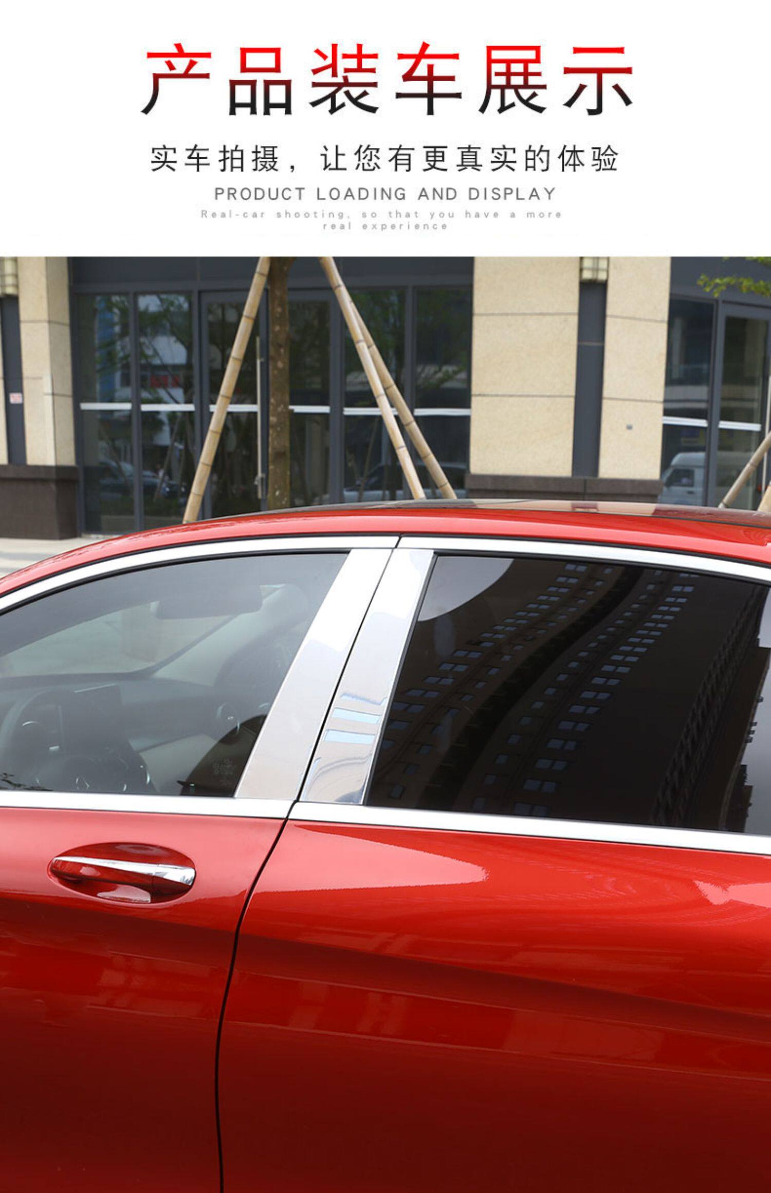 Подходит для Mercedes-Benz C-класса 15-21, модифицированные блестки на окнах C260l C200l, модифицированные яркие полоски на окнах средней стойки