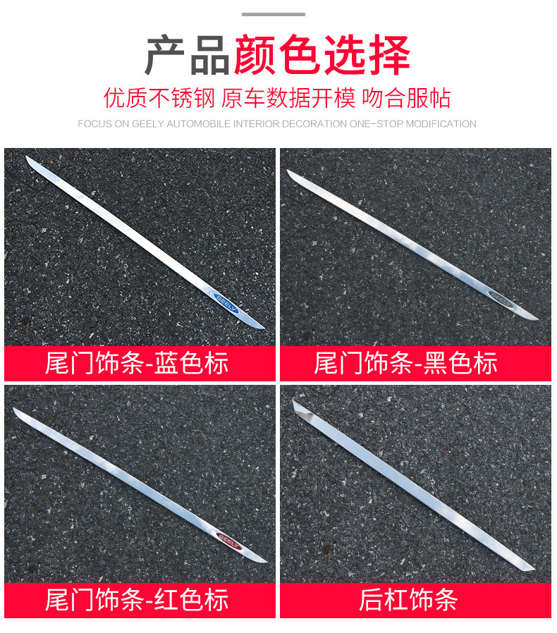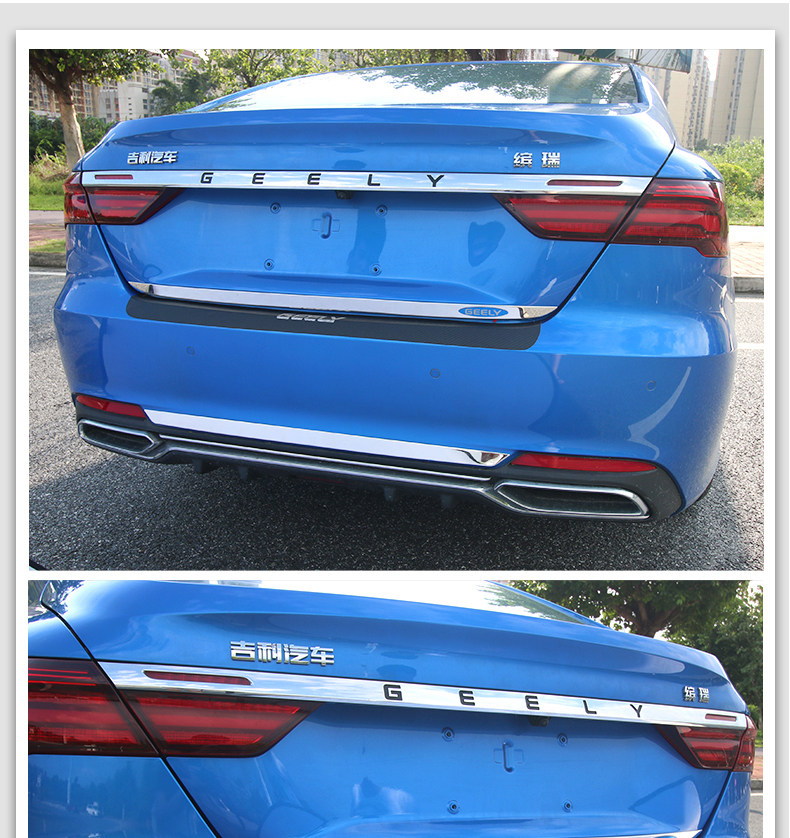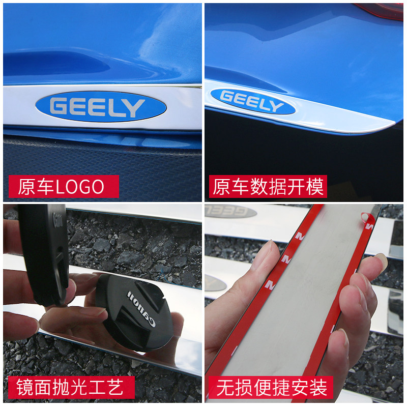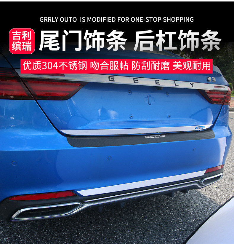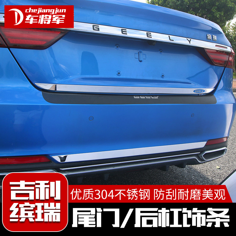 Подходит для Geely Binrui Tail Gate Tripstarian Bin Rui Trunk Bright Bar Modication Специальная модель задней стали из нержавеющей стали