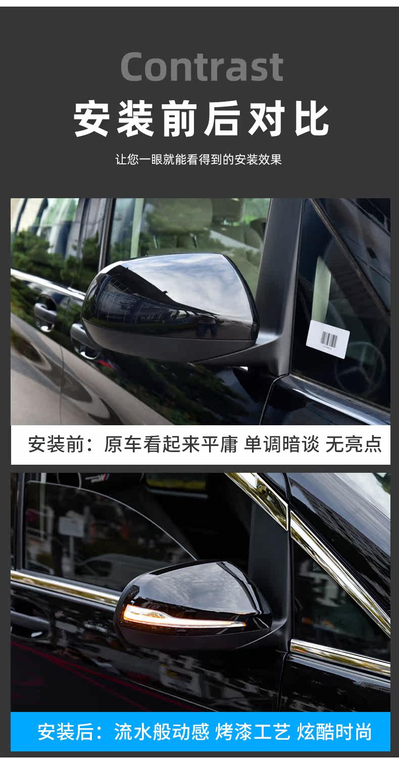 Применимо к 16-20 Mercedes-Benz New Viter с светодиодом, чтобы повернуть зеркальное зеркальное покрытие заднего вида Vito Reachle Mirror Shell