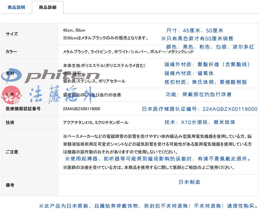 Оригинальная японская фитан Фато Магнитная синхронная ткань o -type Кровавый ряд Улучшенные x10 -водные кольца титанового ожерелья шеи