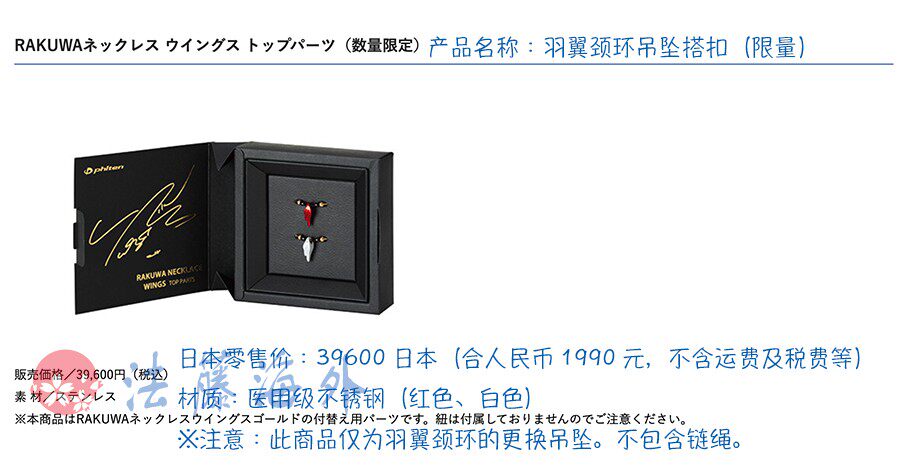 | Цвет: | Ограниченный выпуск красно-белого кулона в виде крыла (готовый запас на внутреннем рынке), Следующие варианты отправляются из японских складов, Ограниченный выпуск красно-белого кулона в виде крыла (прямая почтовая рассылка из Японии) |