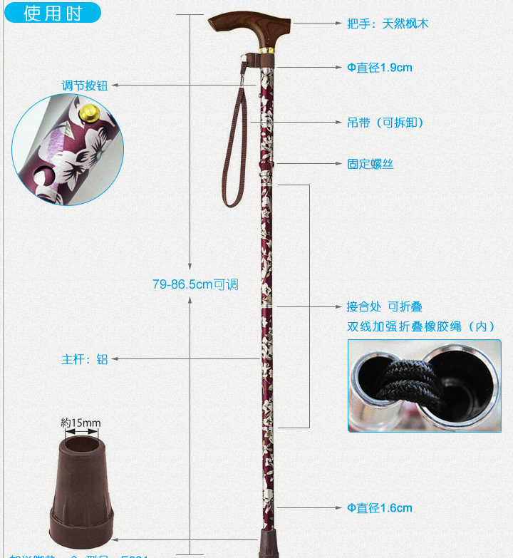 Япония Tacaof Folding Telecope Регулируемый высокоуровневый пожилой алюминиевый сплав-тростника/палка/Cane EOP-105