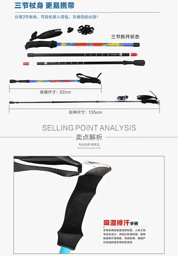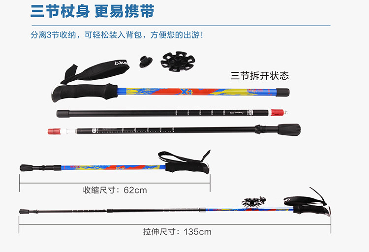 Открытый открытый стержень 7075 алюминиевый сплав Ультра -светлый удар отступления три пешеходных тростника KR1503
