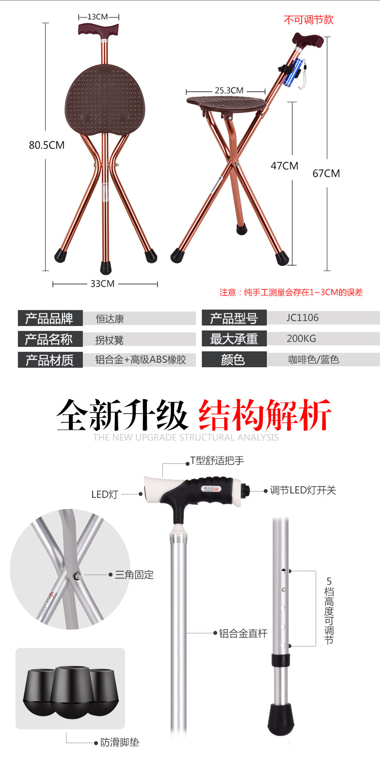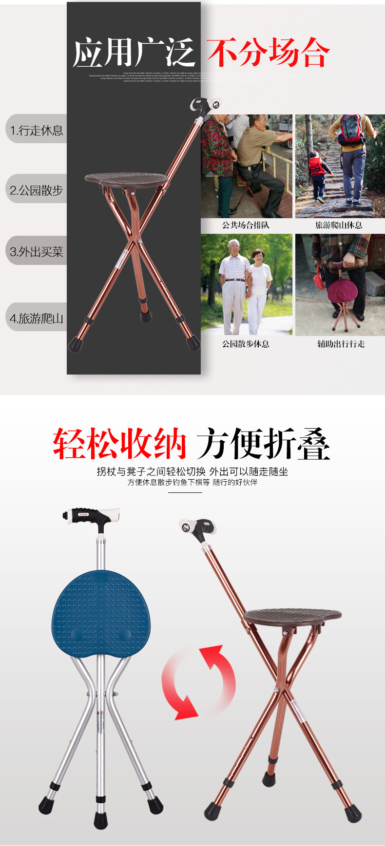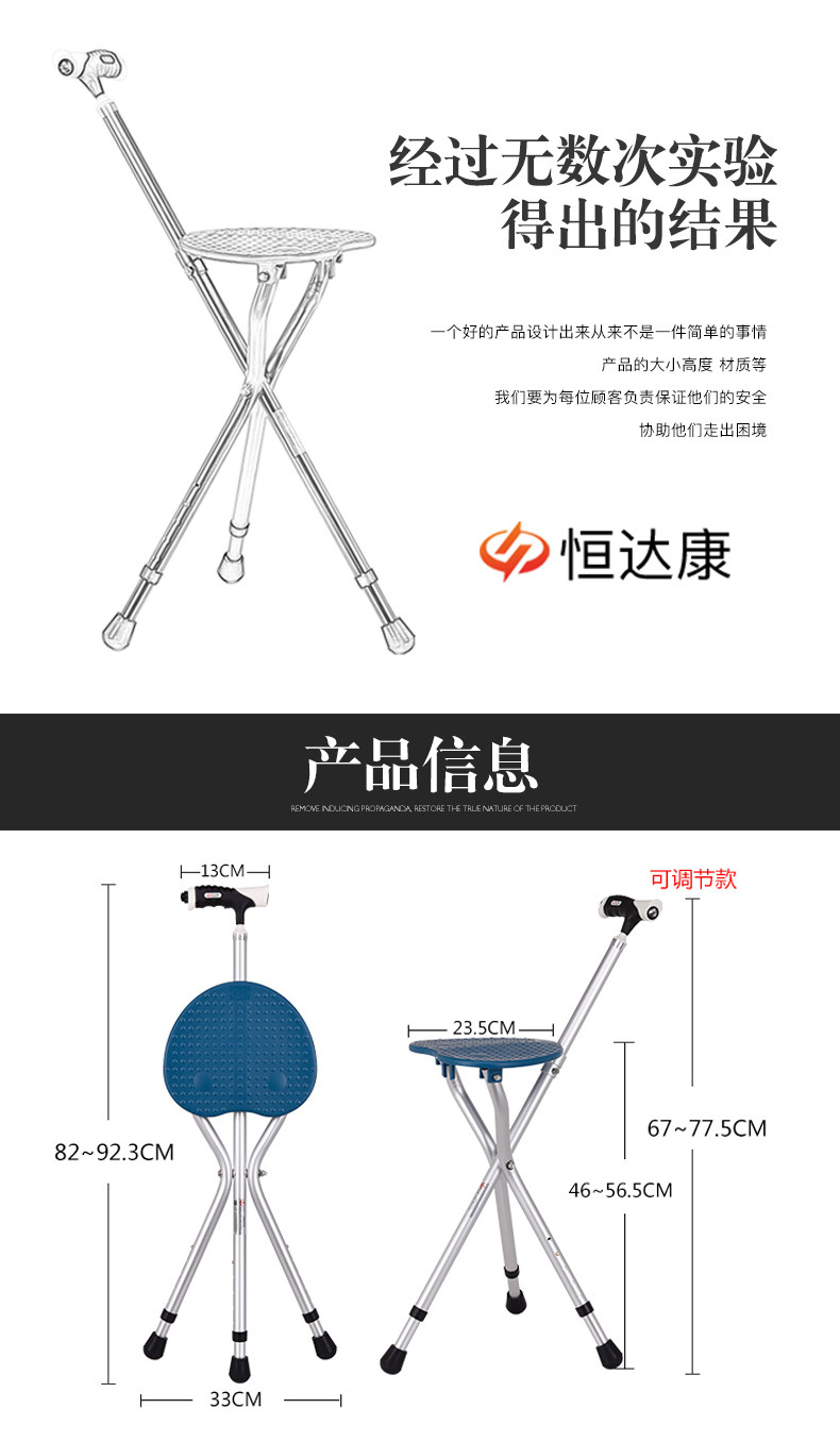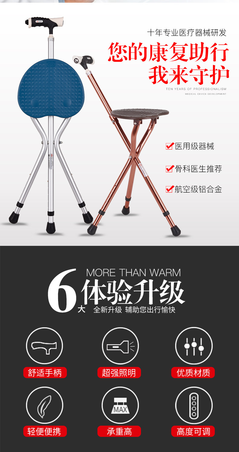 Стул с сплава Старик Старик, палочка, тростника старика, трехгрупное кресло, многопрофессиональный складывание табуретки, склад с легким весом стула с легким весом стула