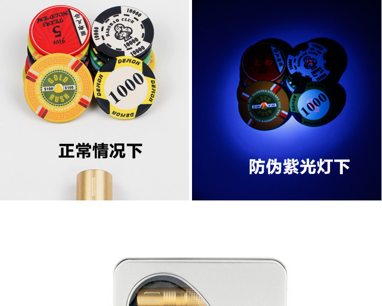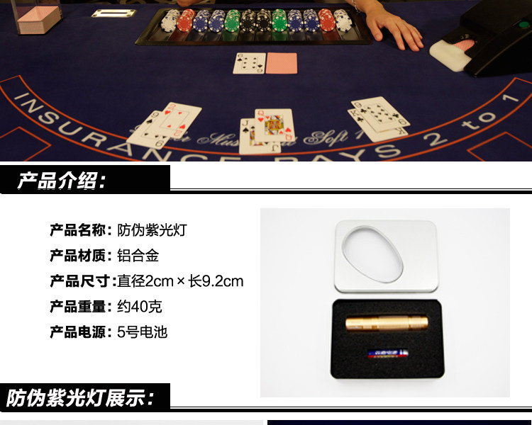 Высокоэлементный светодиодный ультрафиолетовый свет Техасский покер -керамика Валюта анти -Counterfeit Light Flashlight Club посвящен