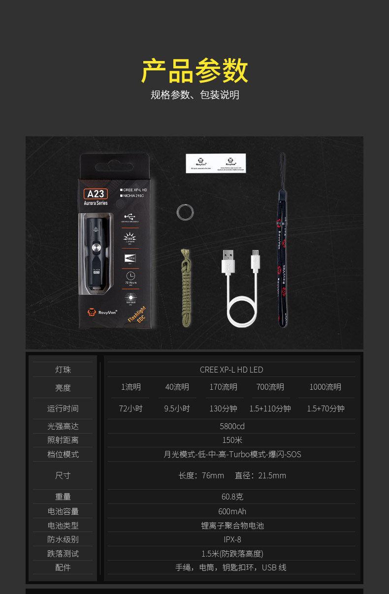 Rovyvon Ruifu A24 Титановый сплав Микро -светлый фонарик Super Bright Long -Range зарядка Mini Outdoor Portable