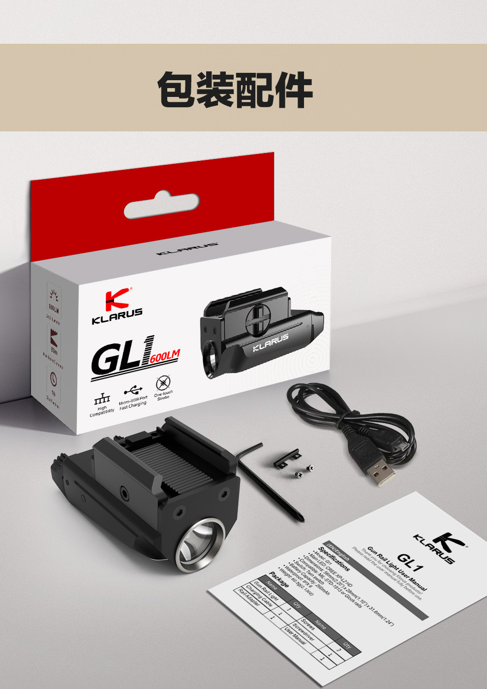 Klarus Kerz GL1 Мини -туктический фонарик с сильным светом короткой USB зарядки
