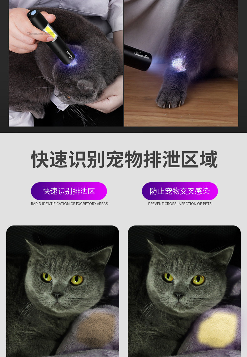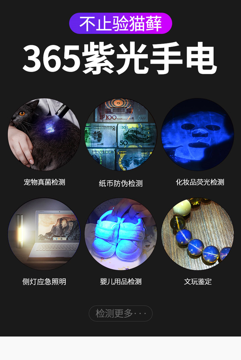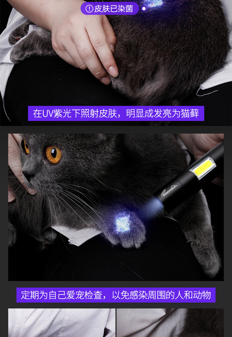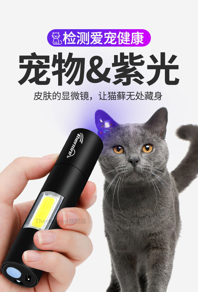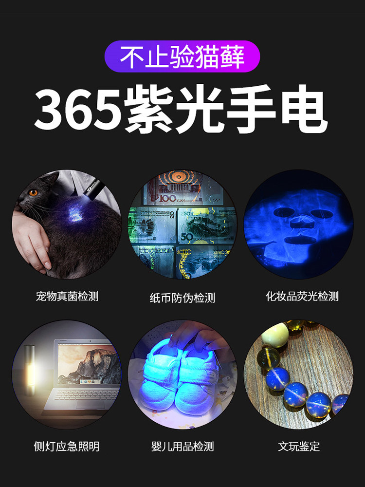 Лампа Вуда для кошачьего мха, мочи, стригущего лишая, фонарик для обнаружения грибков, ультрафиолетовый флуоресцентный агент, небольшая перезаряжаемая лампа для детектора денег.