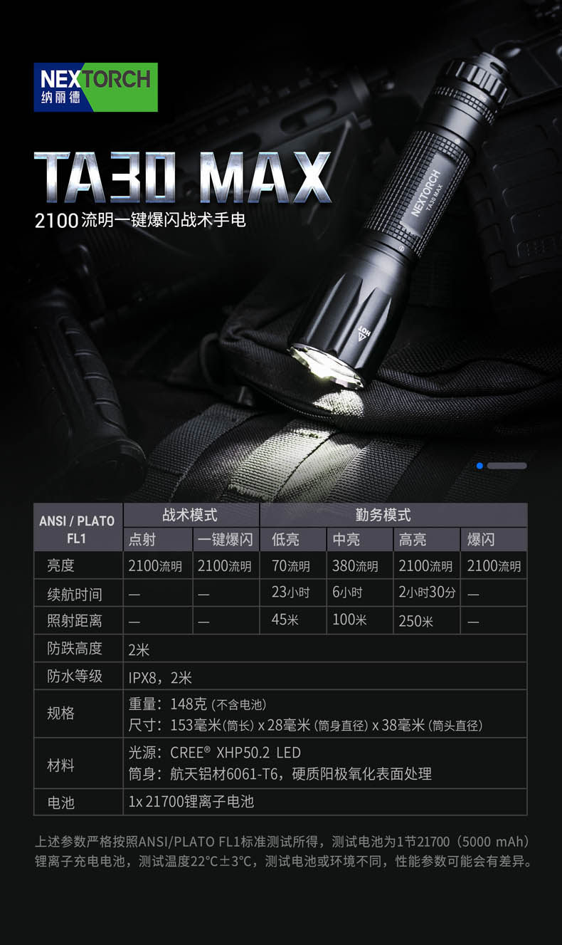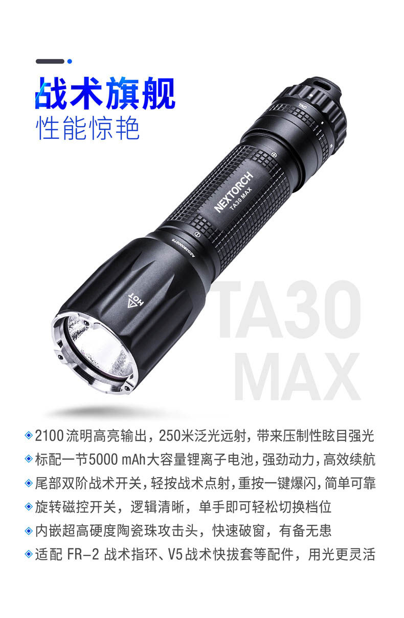 Nalide TA30 Макс Высоко -яркий тактический фонарик один -пустяк один -пустотечный флэш -магнитный кольцо 2100