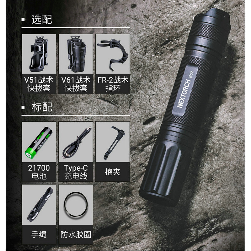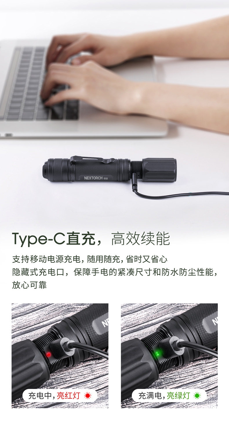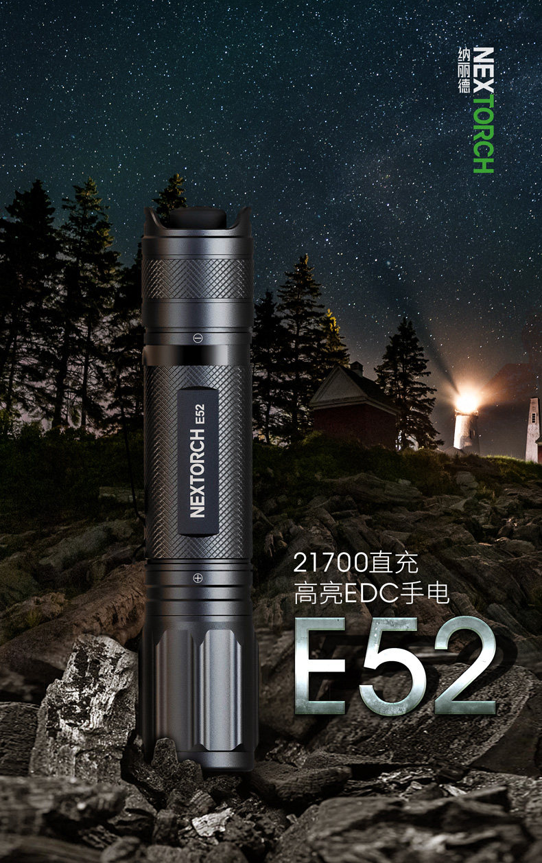Naride E52 Ultra-Highlight Lumens 2500, портативная прямая зарядка EDC фонарика Type-C Зарядка водонепроницаемая небольшая прямая трубка