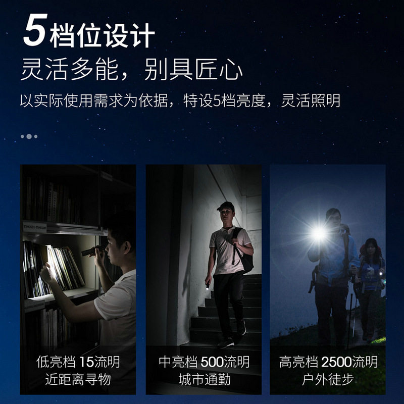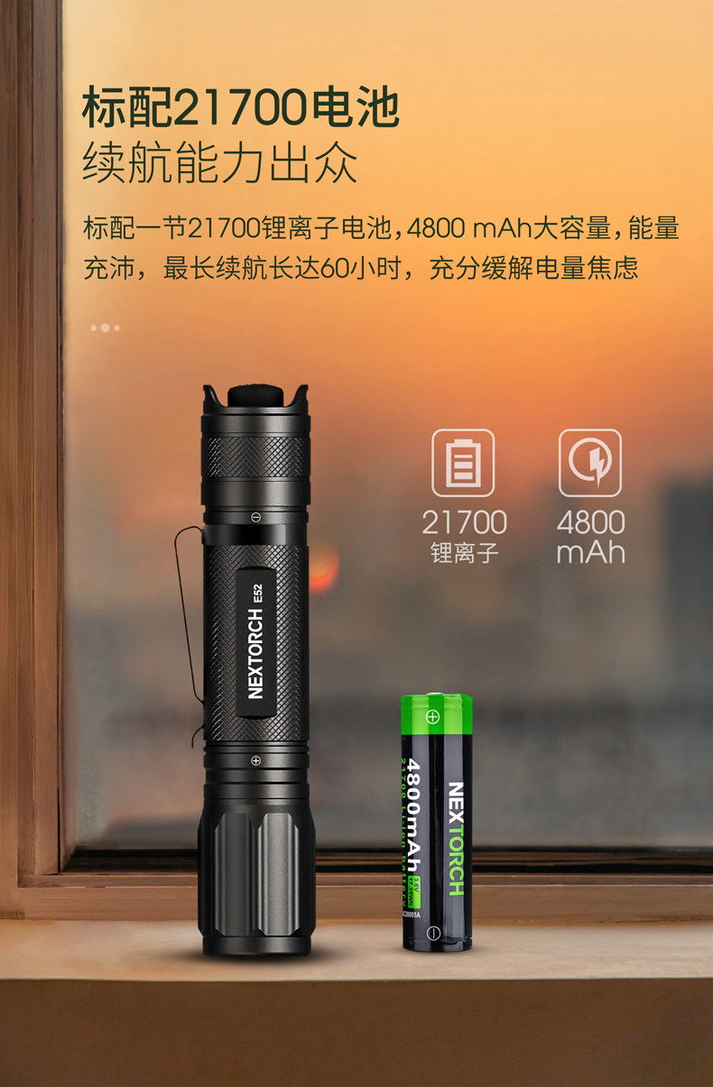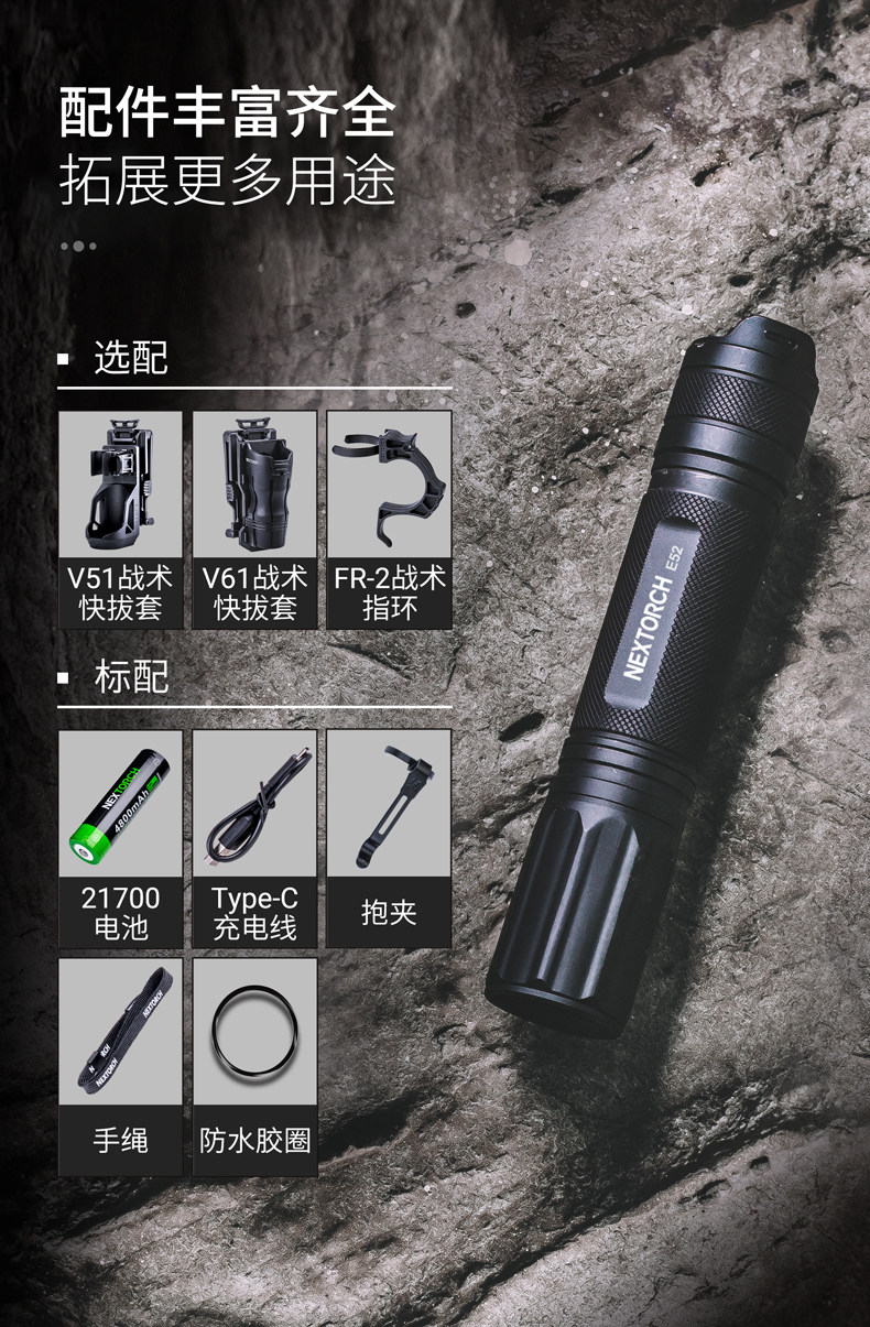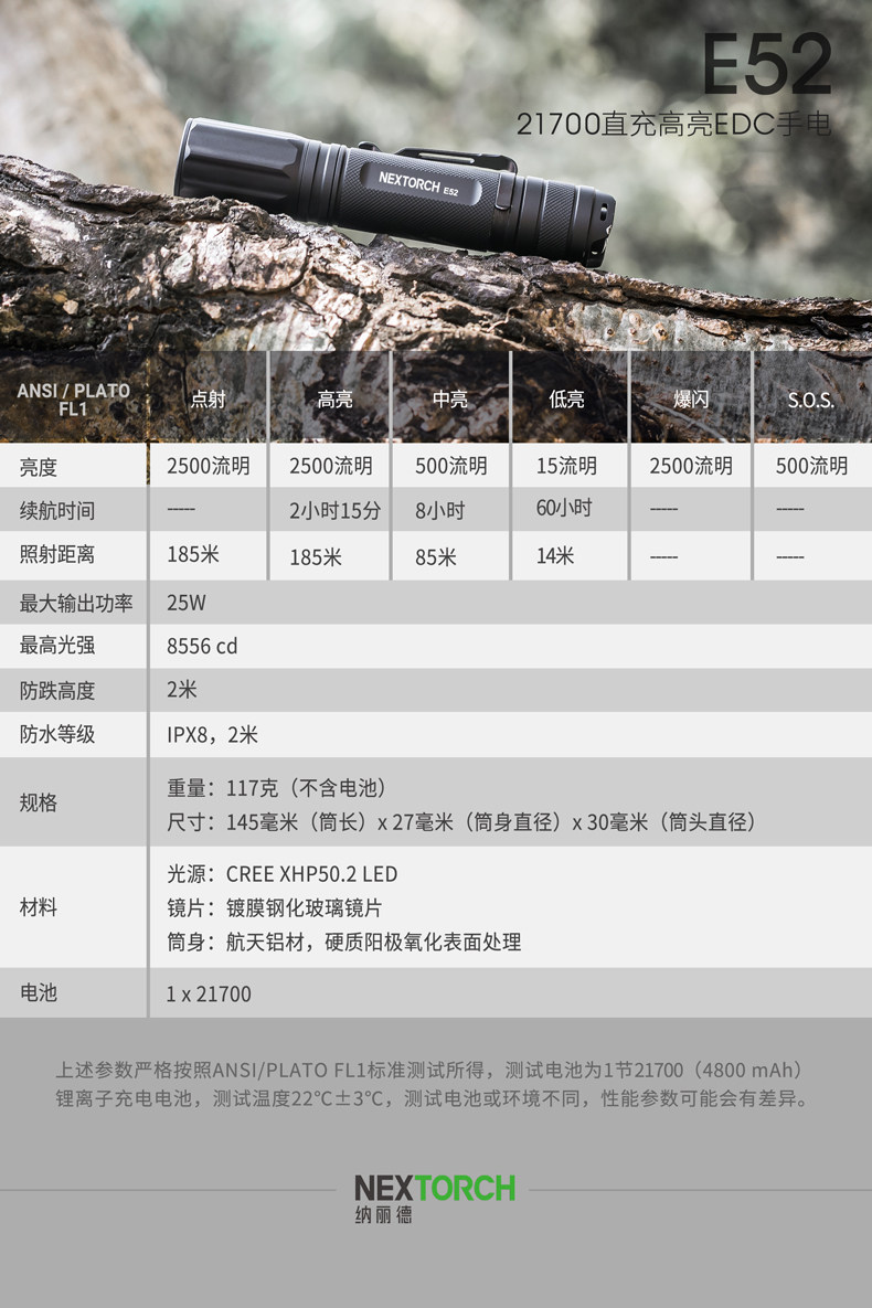 Naride E52 Ultra-Highlight Lumens 2500, портативная прямая зарядка EDC фонарика Type-C Зарядка водонепроницаемая небольшая прямая трубка