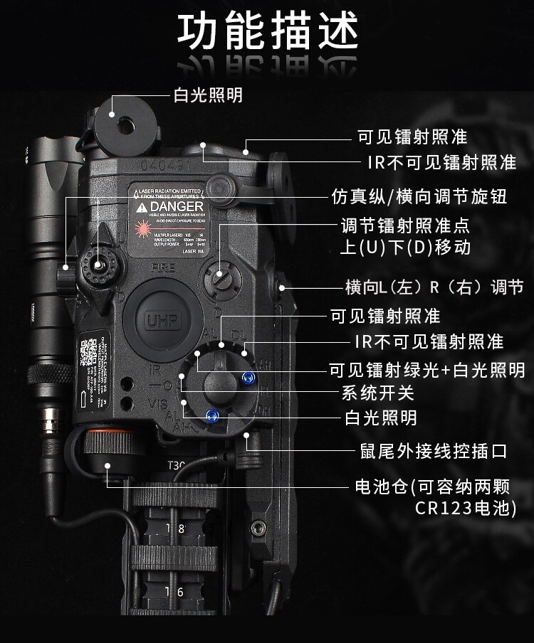 Tactical PEQ15 Полная функция красный/зеленый/ИК -лазерный индикатор M300A/M600C Фонарик Двойной