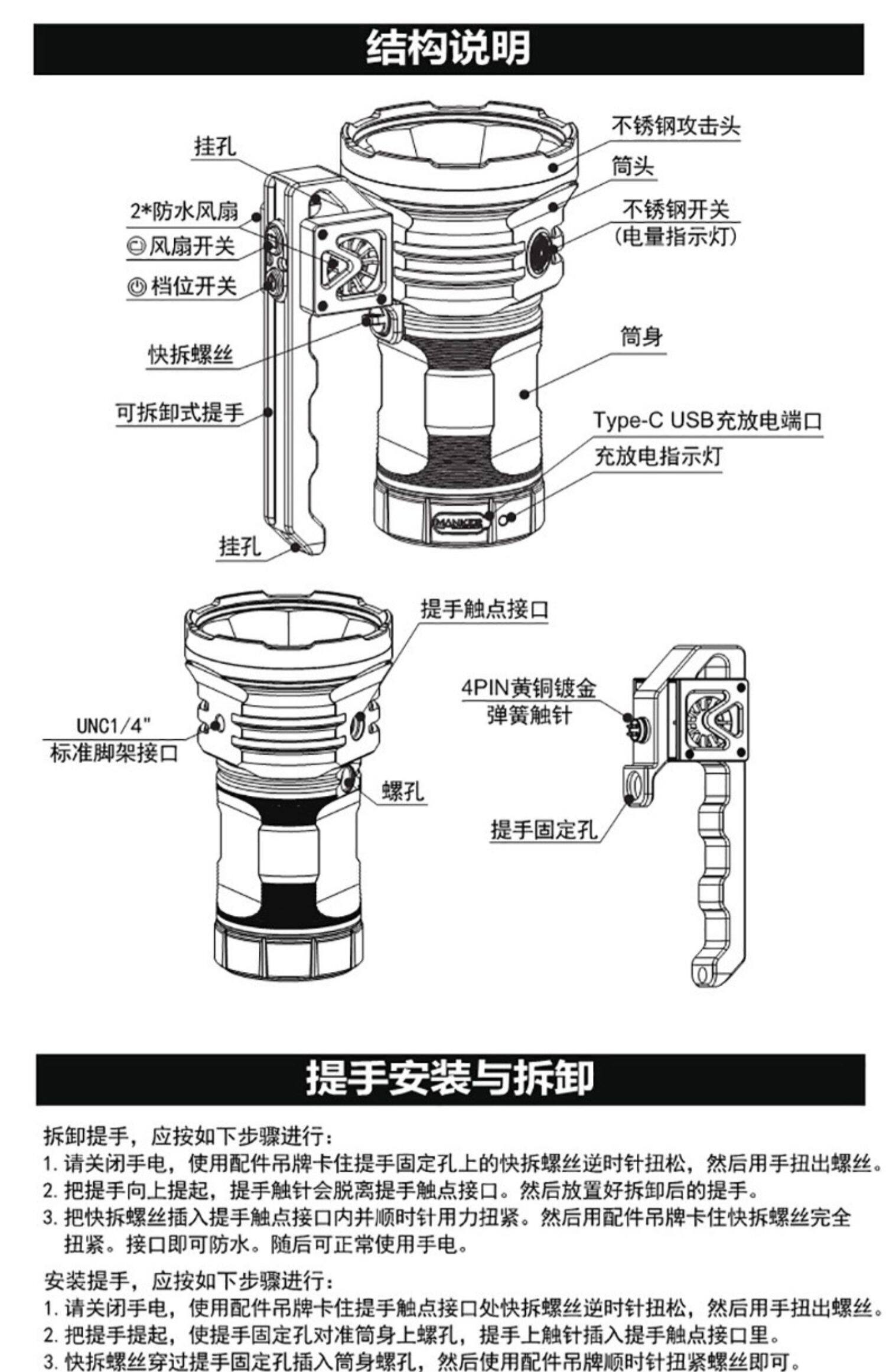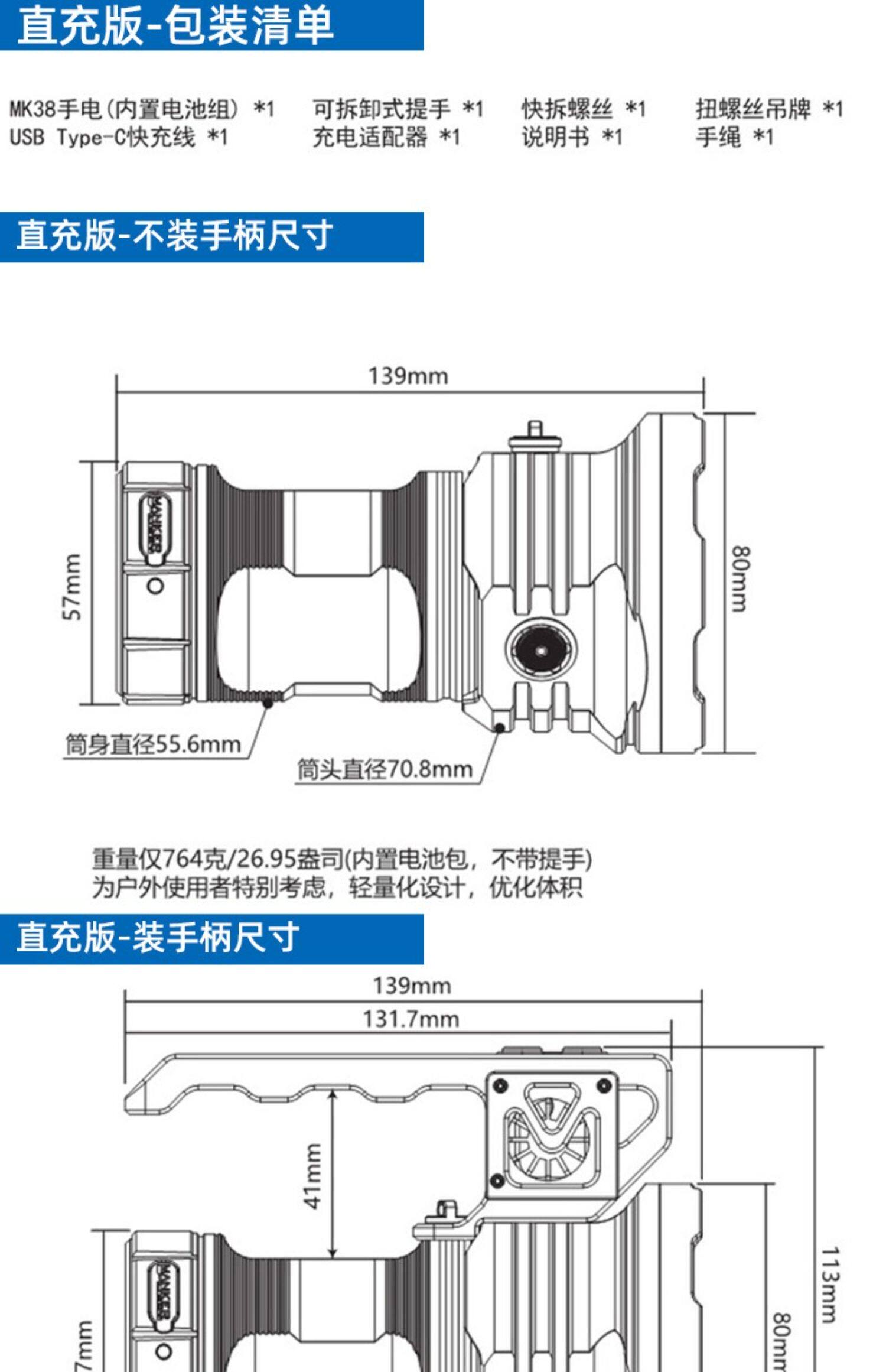 Manker Manke Mk38 Сильный легкий зарядный вентилятор до холодного 41500 Lumen Outdoor Search Palm Flashlight