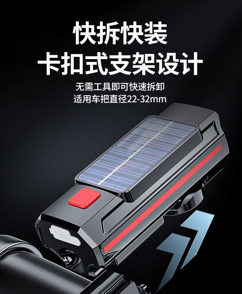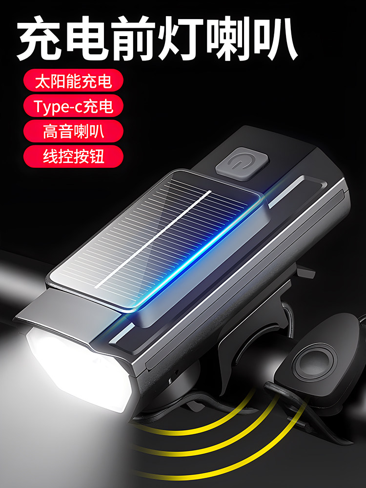 Велосипед на солнечной энергии, передние фары, горный детский мегафон, ночной фонарь для велоспорта с зарядкой