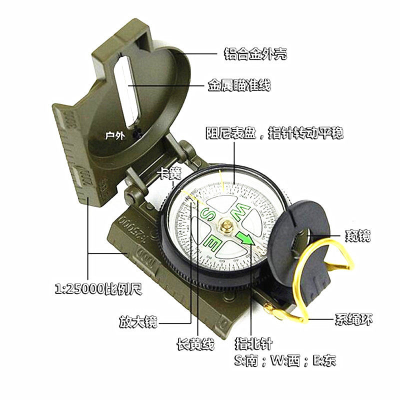 Американская стиль северной иглы на открытом воздухе скалола на дикий лагерь портативный складной компас инструмент многофункциональный компас