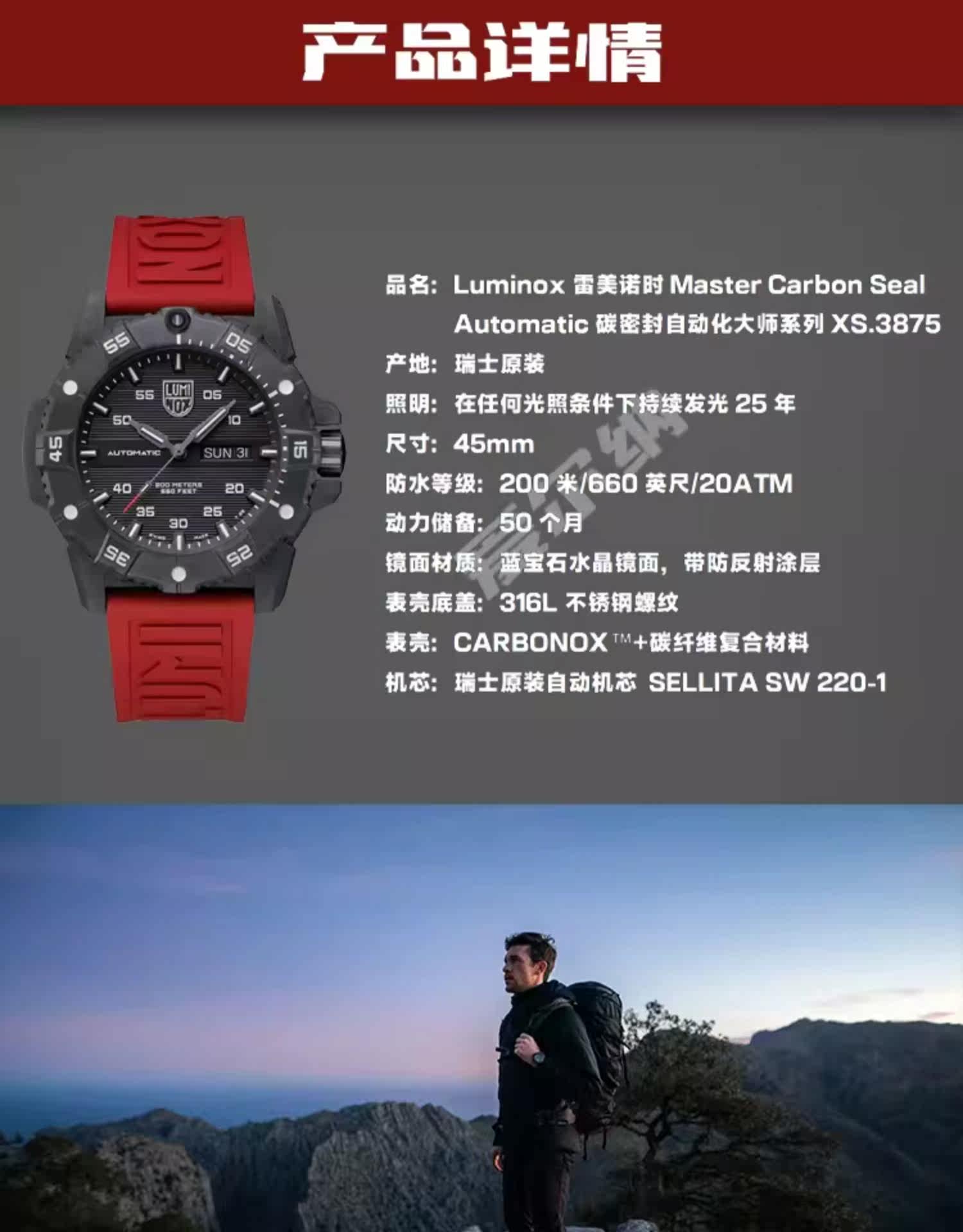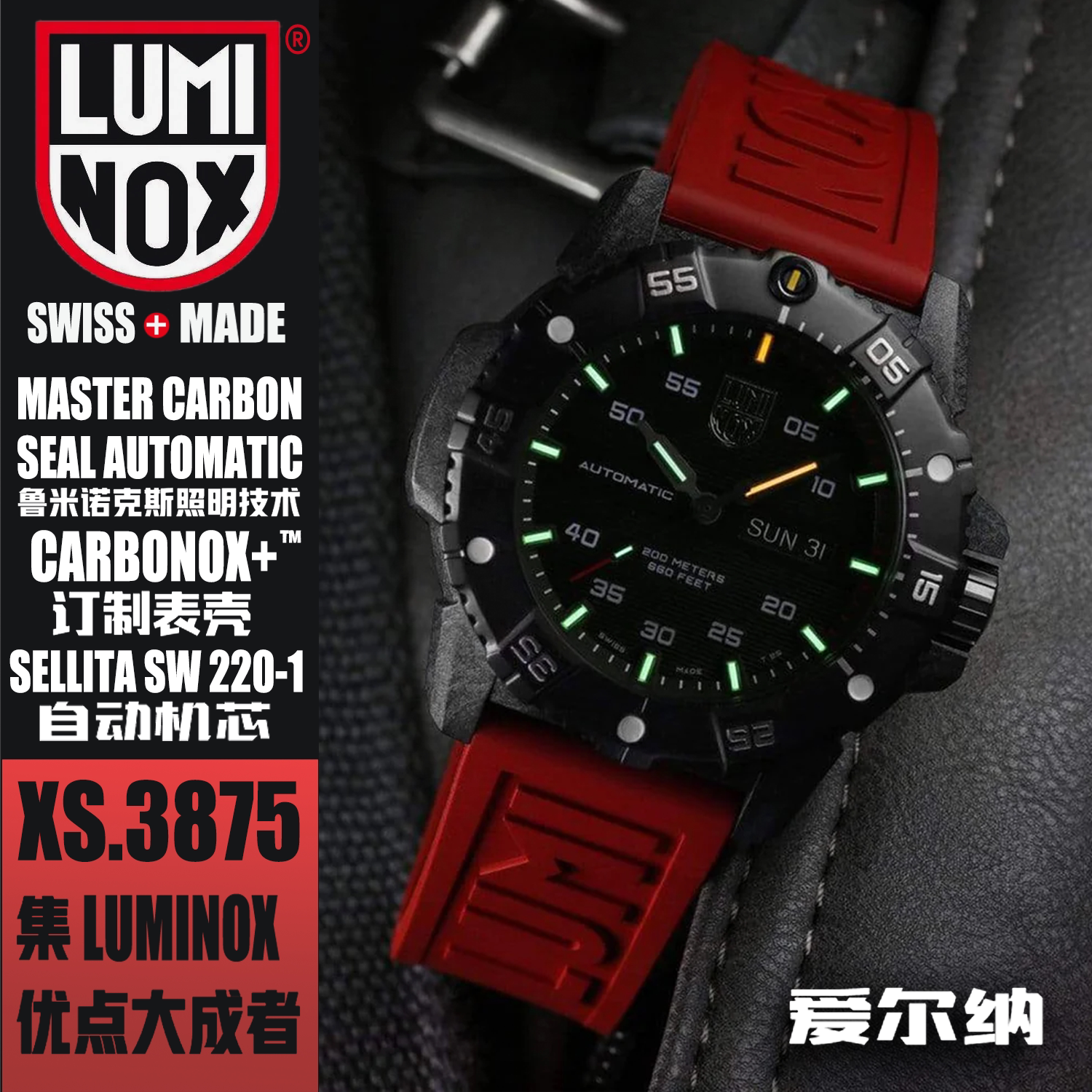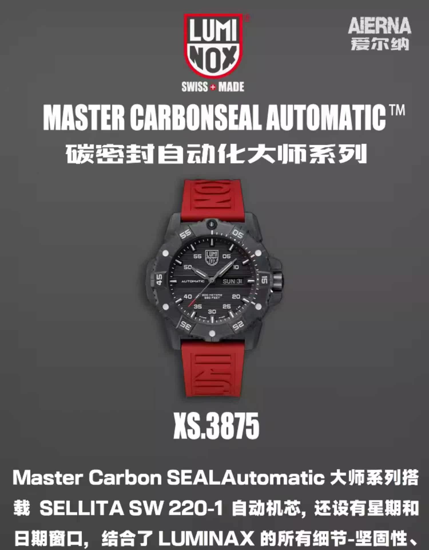 Автоматические механические часы LUMINOX Black Warrior Carbon Fiber Master 3875.BO, новый продукт серии 3860