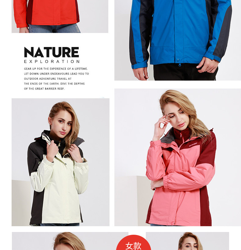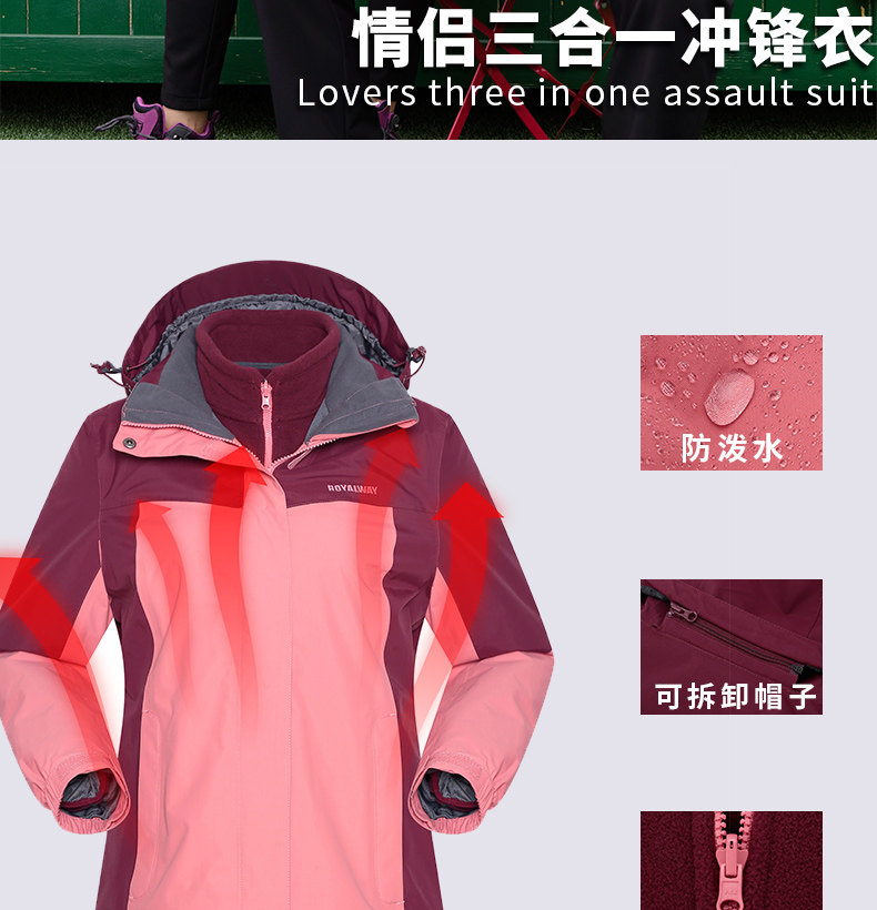 Дорожная демисезонная куртка для влюбленных подходит для мужчин и женщин, комплект, бархатный удерживающий тепло ветрозащитный вкладыш, «три в одном»