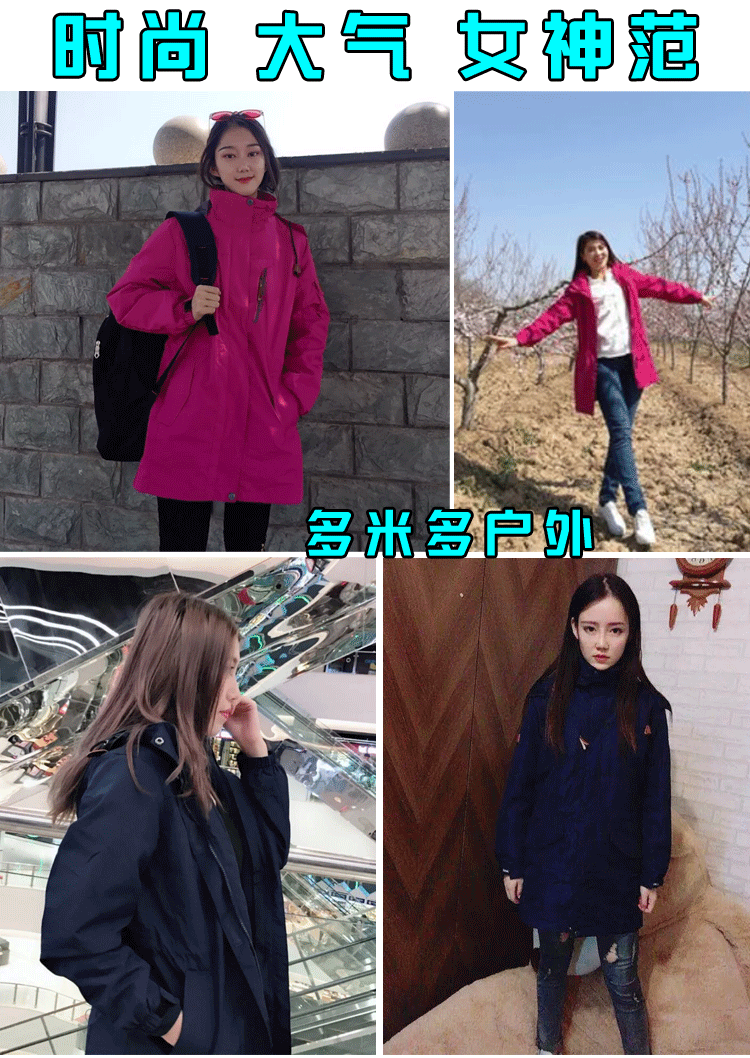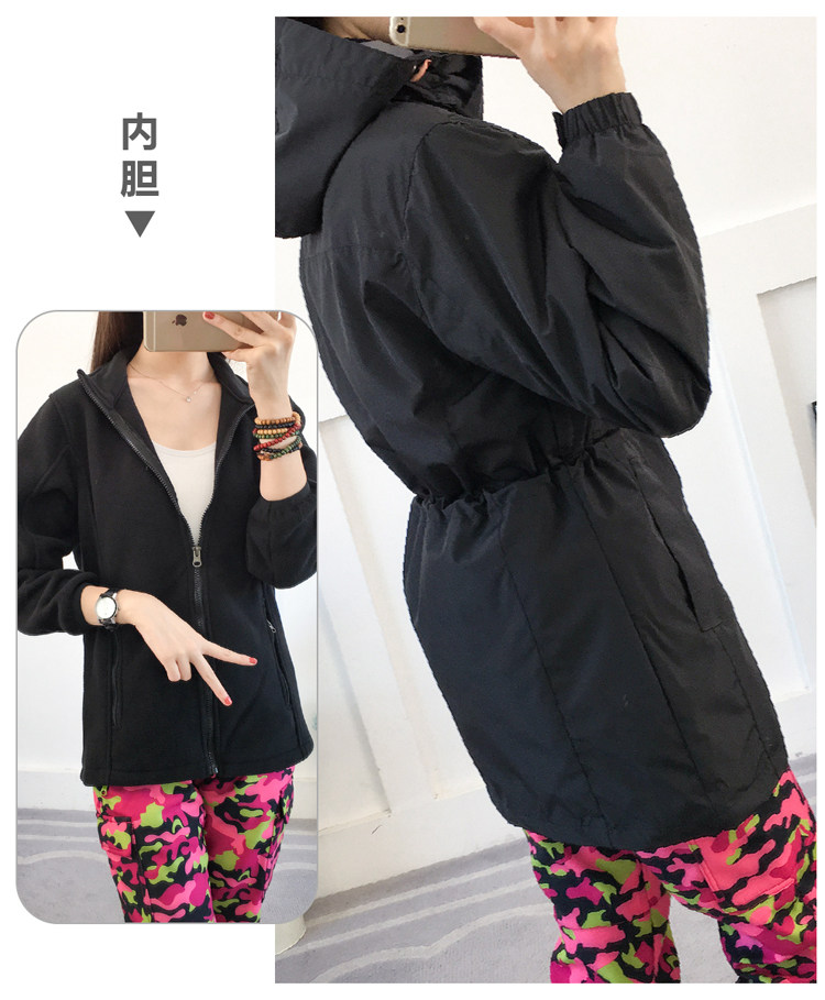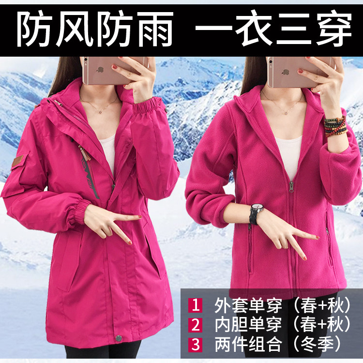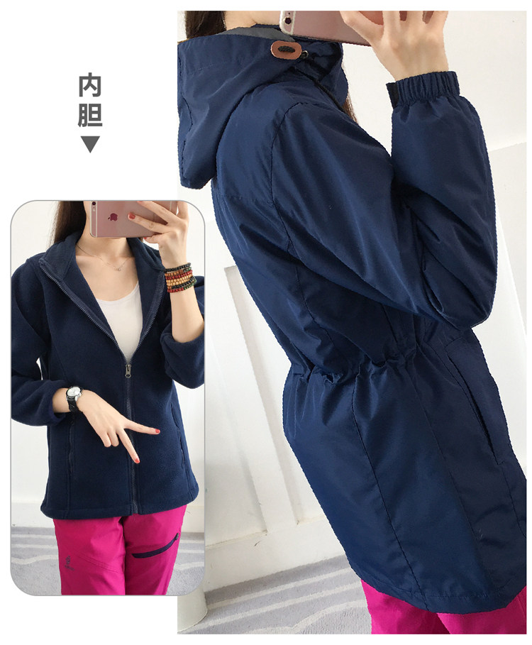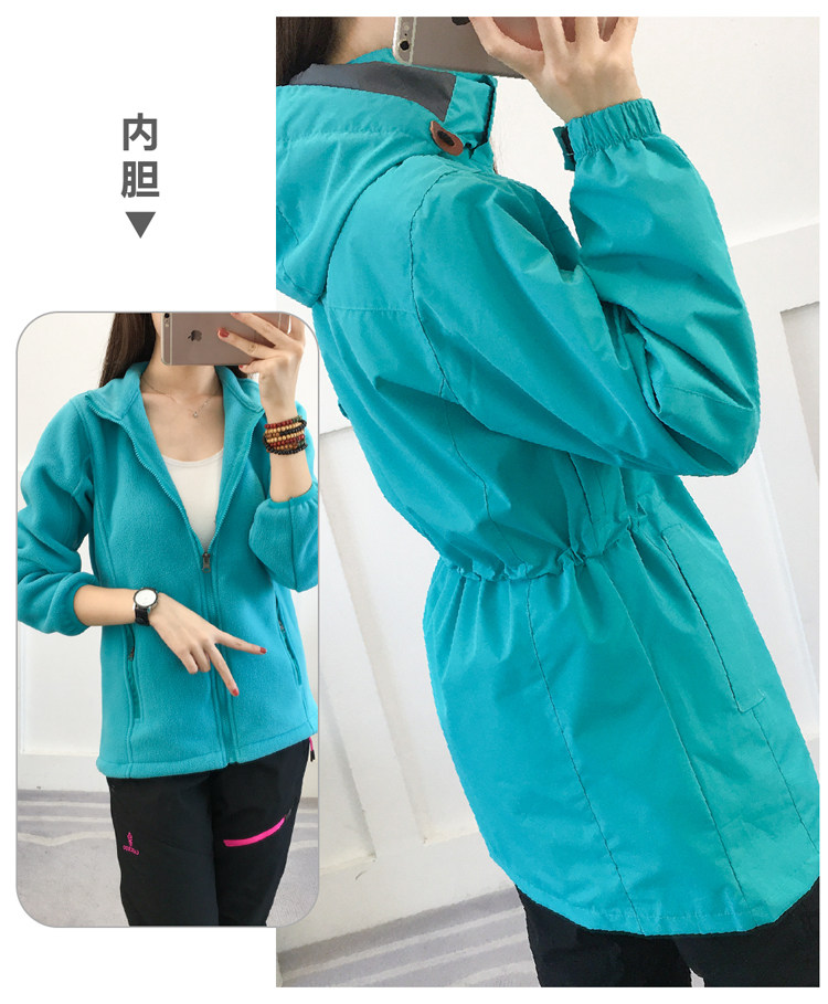 Длинная куртка подходит для мужчин и женщин, водонепроницаемый съемный комплект, бархатный демисезонный дорожный вкладыш для скалозалания, средней длины, «три в одном»