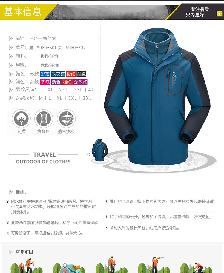 Дорожная бархатная альпинистская демисезонная куртка, делается под заказ, с печатью вашего логотипа, «три в одном», увеличенная толщина