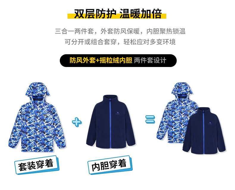 Детская съемная куртка, флисовый комплект для мальчиков, «три в одном»