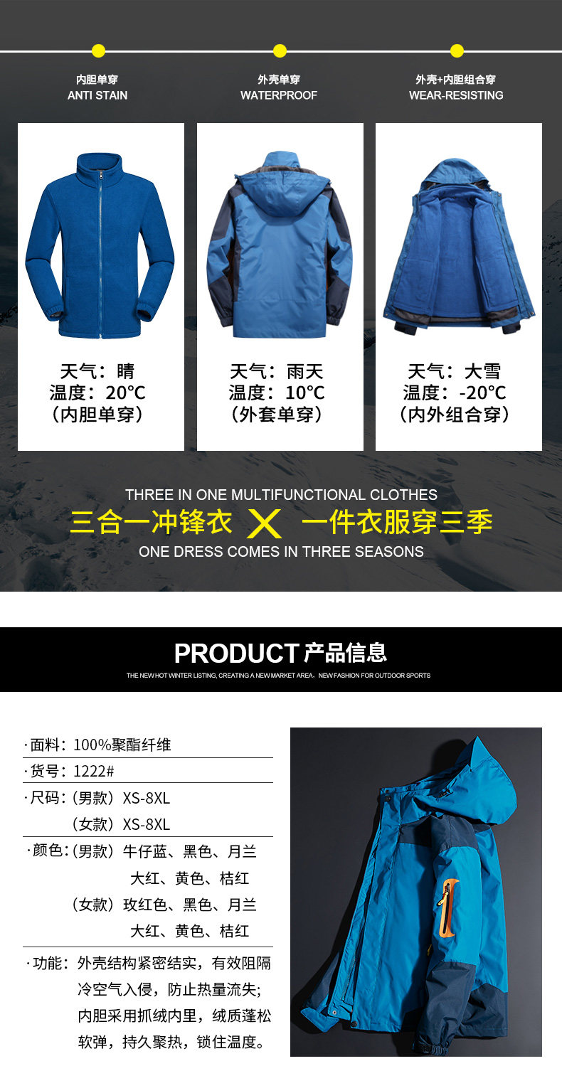 Дорожная куртка, съемный утепленный водонепроницаемый альпинистский комплект, «три в одном»