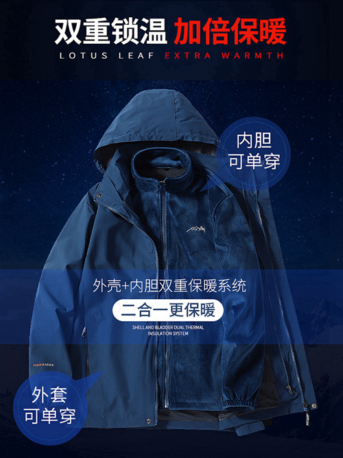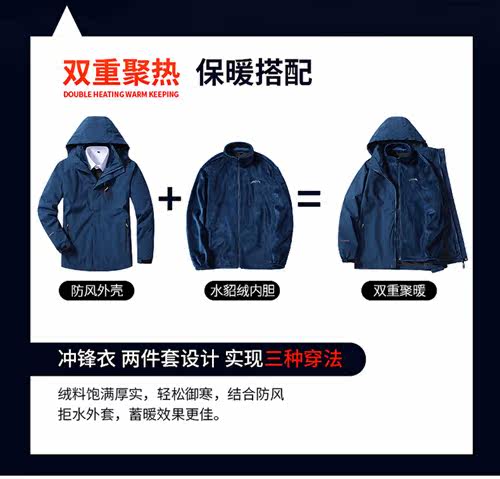 Утепленная съемная ветрозащитная альпинистская куртка, «три в одном»