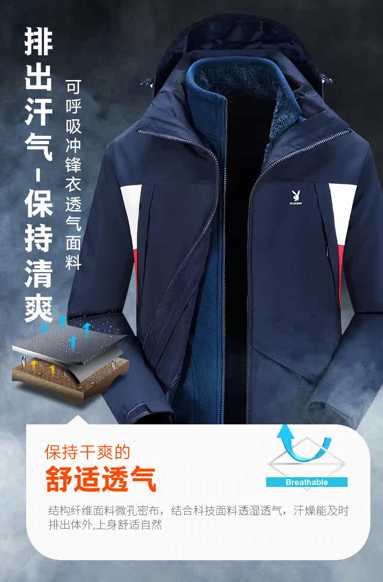 Playboy, демисезонная утепленная водонепроницаемая ветрозащитная удерживающая тепло альпинистская куртка подходит для мужчин и женщин, «три в одном»