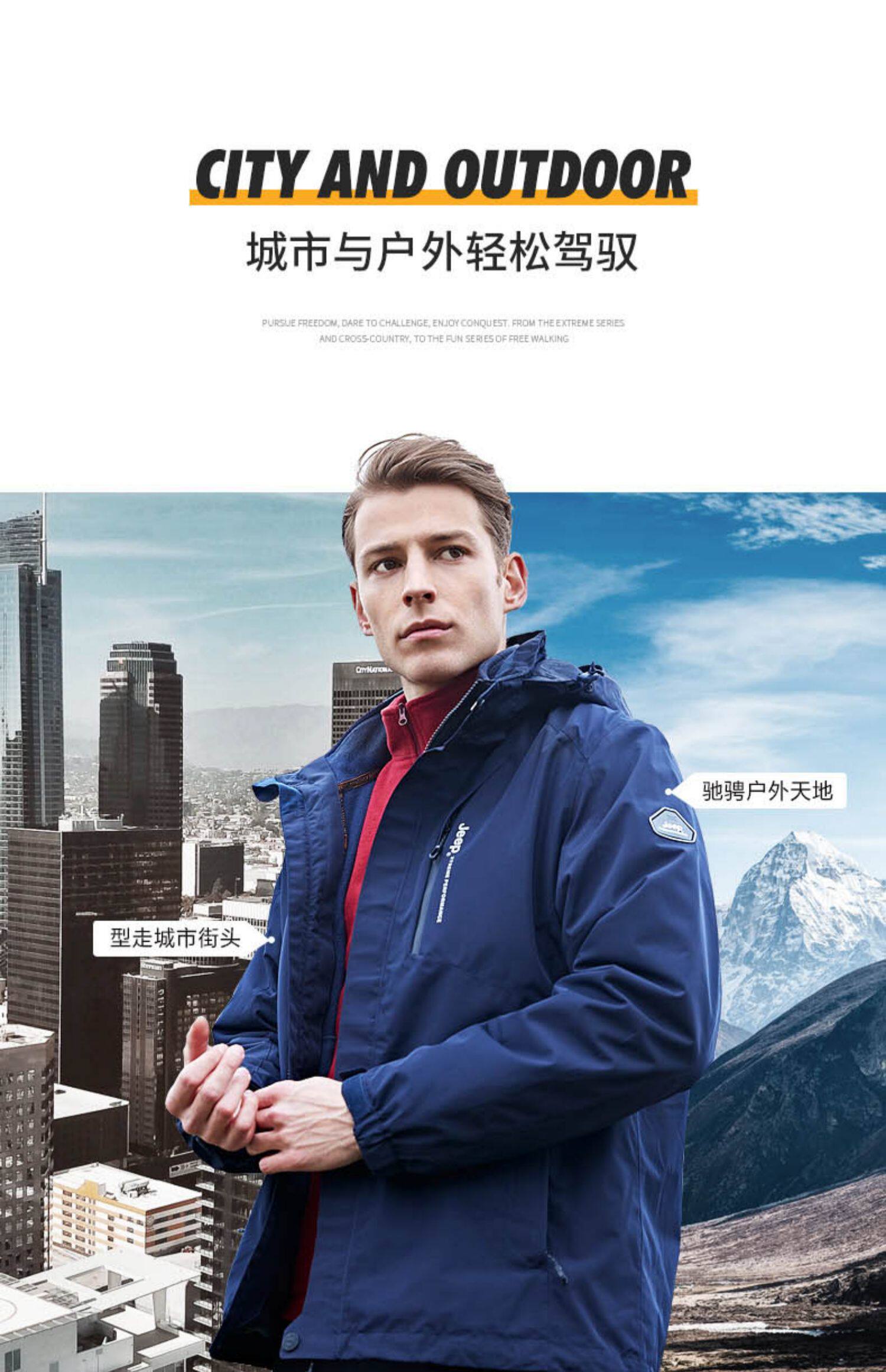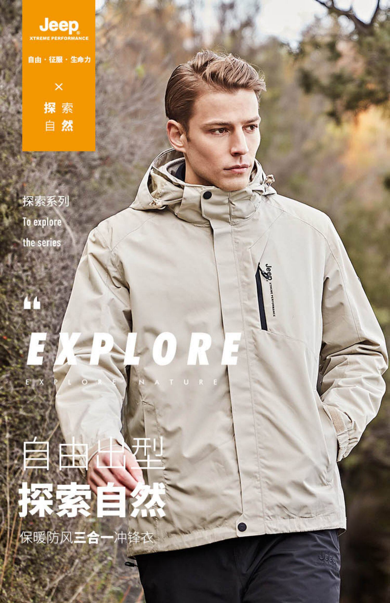 Jeep, джип, утепленный комплект, альпинистская дорожная съемная куртка, «три в одном»