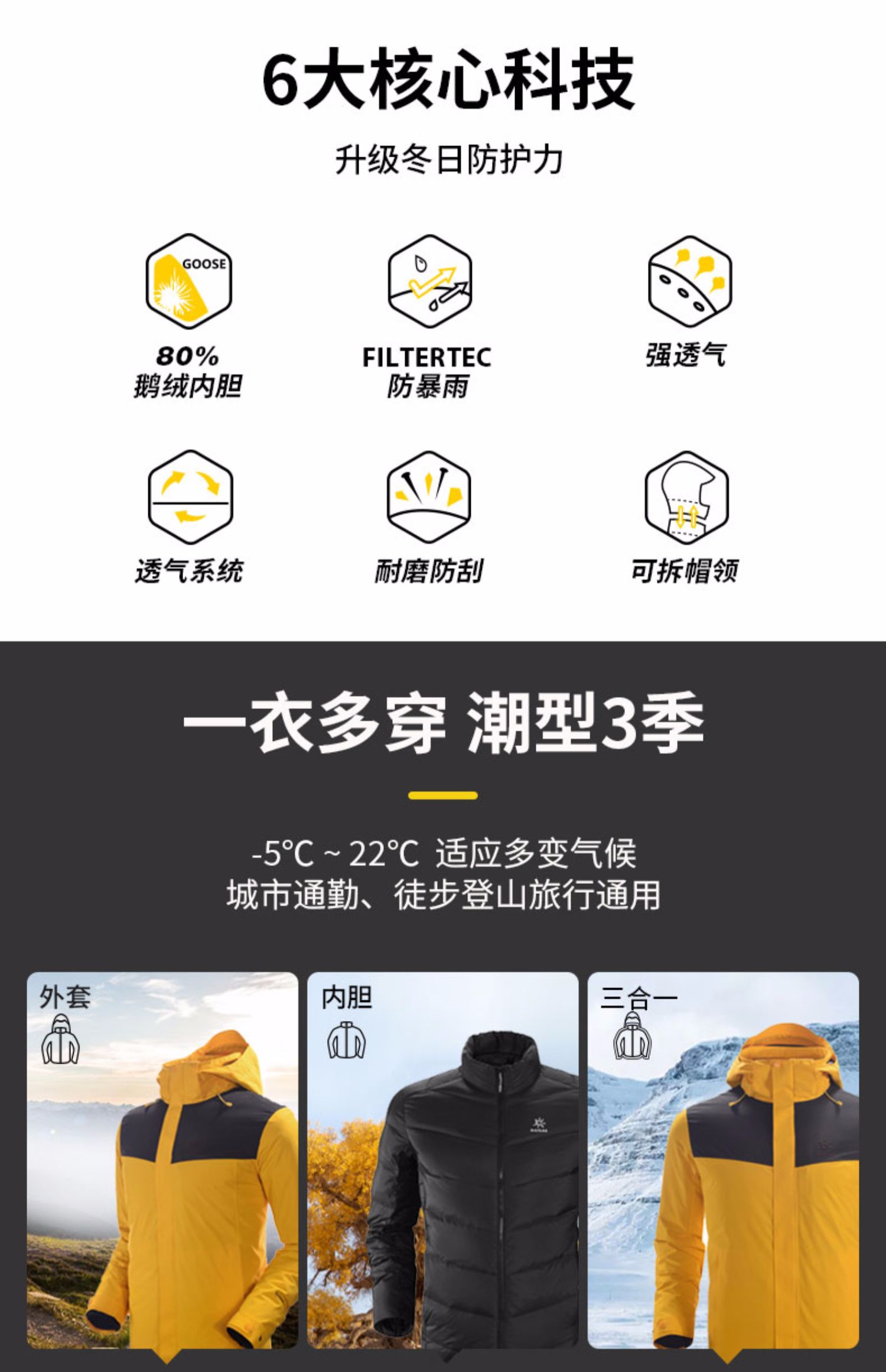 Зимняя дорожная спортивная водонепроницаемая куртка с пухом, «три в одном»