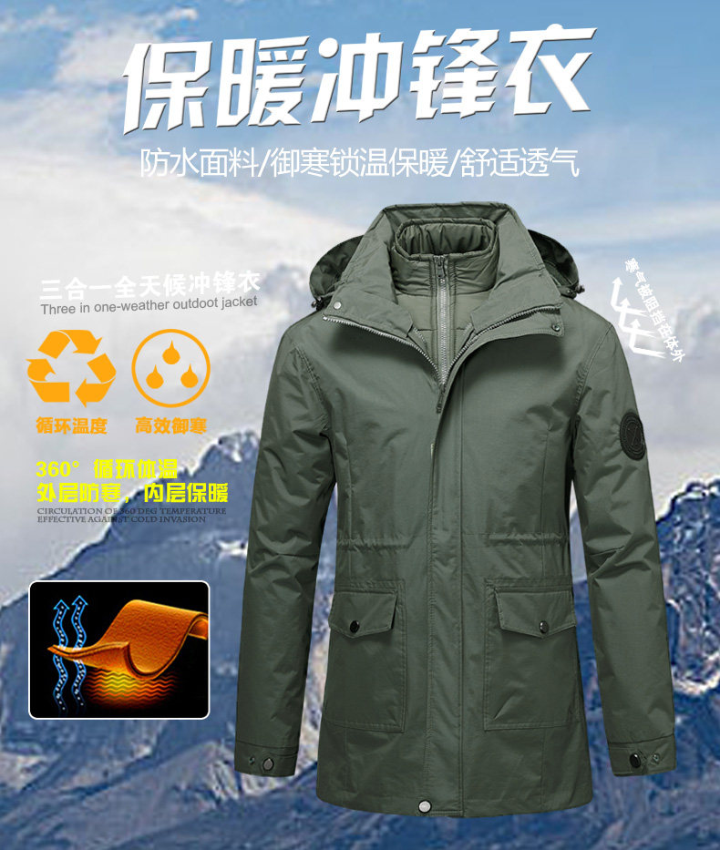 Дорожная длинная куртка подходит для мужчин и женщин, комплект с пухом, вкладыш, средней длины, увеличенная толщина, «три в одном», делается под заказ