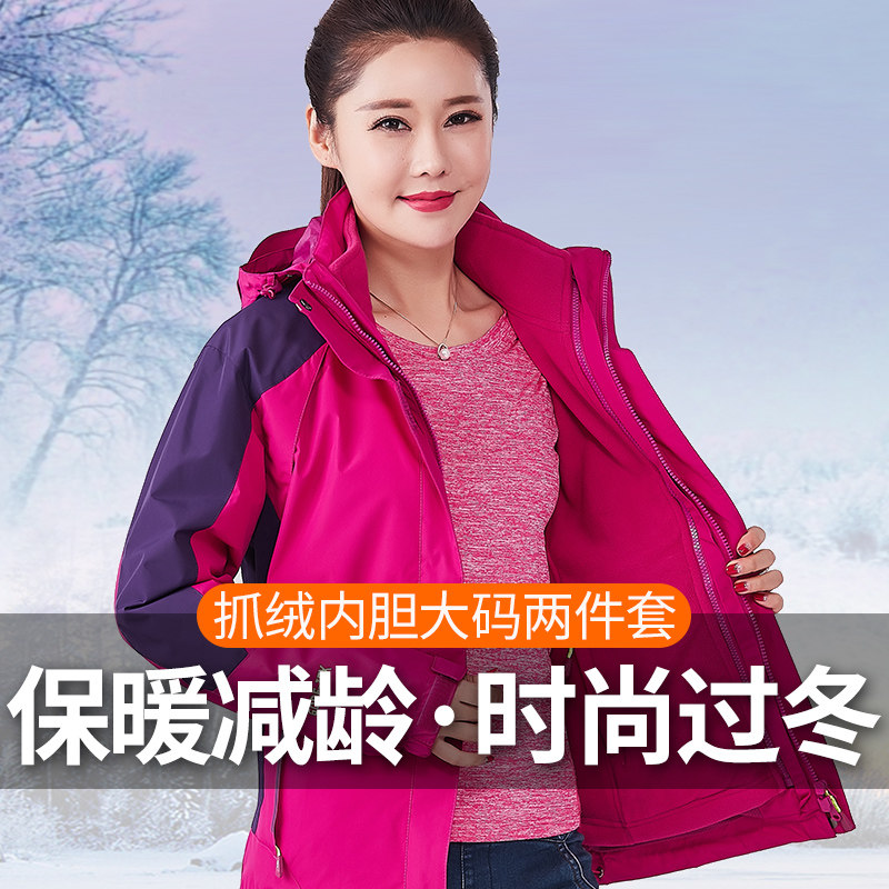 Демисезонная куртка для пожилых людей, альпинистский утепленный удерживающий тепло водонепроницаемый комплект для матери, «три в одном», большой размер
