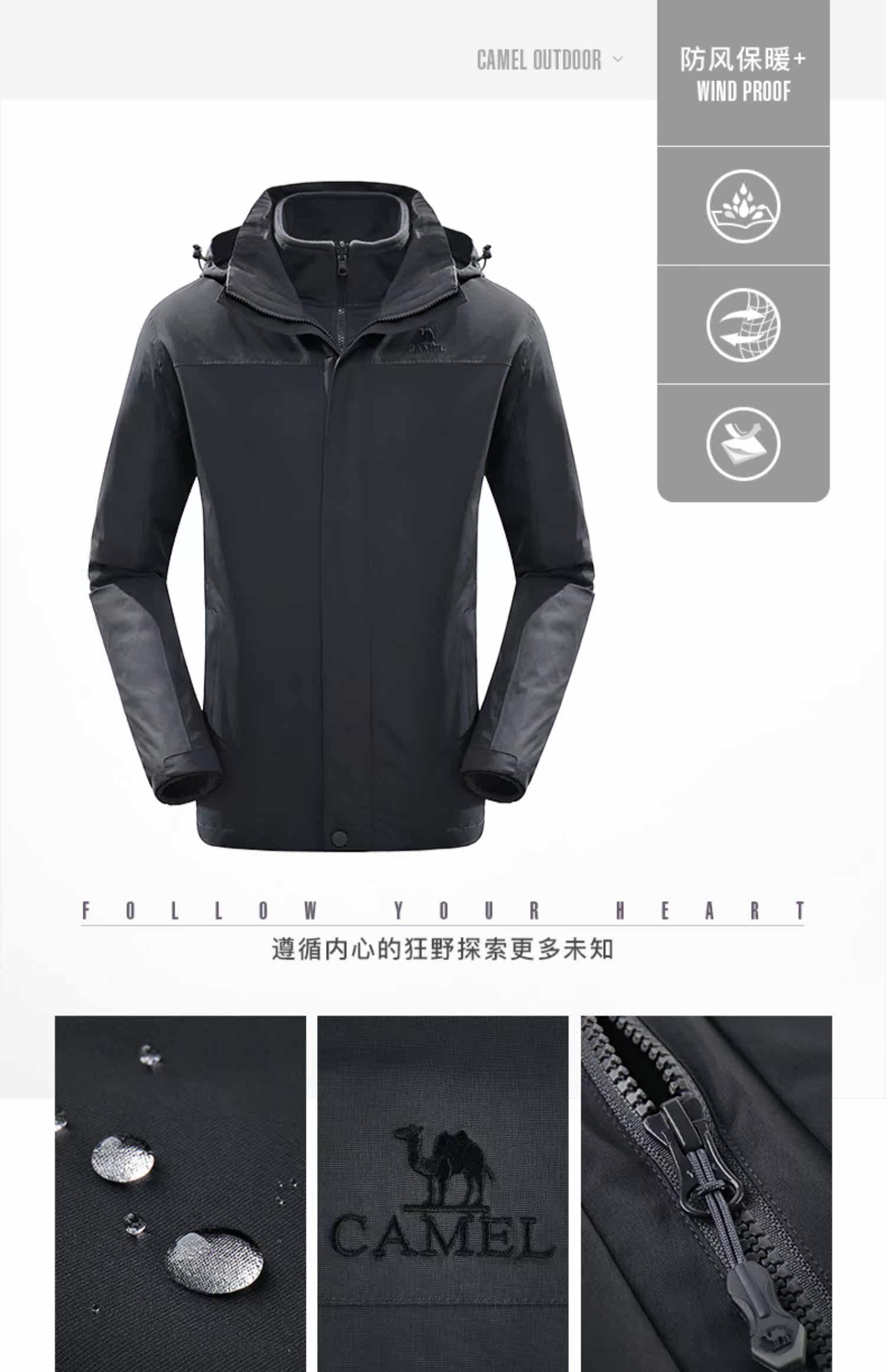 Дорожная утепленная куртка подходит для мужчин и женщин для влюбленных, ветрозащитный водонепроницаемый комплект, «три в одном»