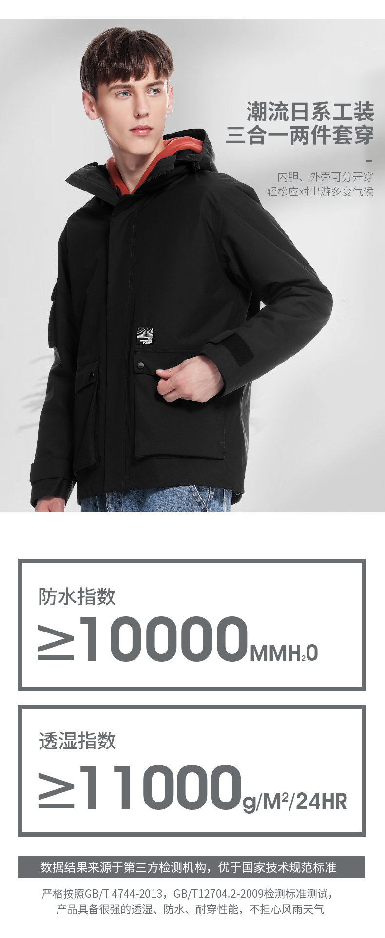 Куртка подходит для мужчин и женщин, съемный водонепроницаемый ветрозащитный дорожный комплект для скалозалания, «три в одном»