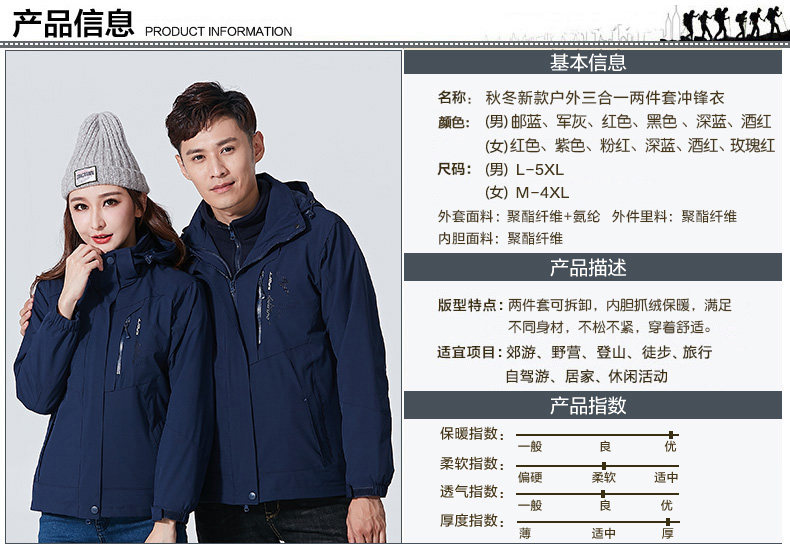 木林森 Демисезонное ветрозащитное пальто, водонепроницаемый съемный комплект, лыжный лыжный костюм, «три в одном»