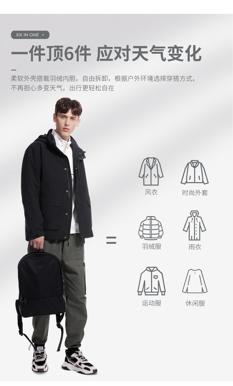 Куртка с пухом, бархатный вкладыш, съемный альпинистский комплект, придает объем, утиный пух, «три в одном»