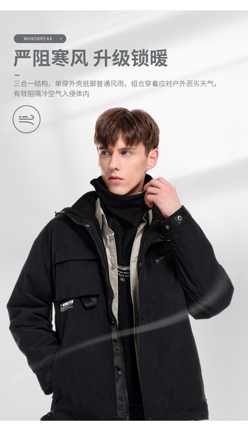 Мужская осенняя ветрозащитная водонепроницаемая съемная куртка, бархатный комплект, «три в одном»