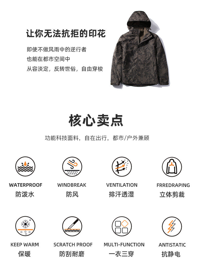 Дорожная удерживающая тепло куртка подходит для мужчин и женщин, съемный камуфляжный ветрозащитный водонепроницаемый альпинистский комплект, «три в одном»