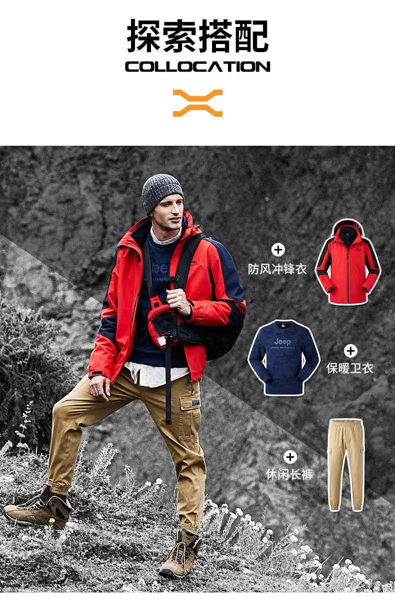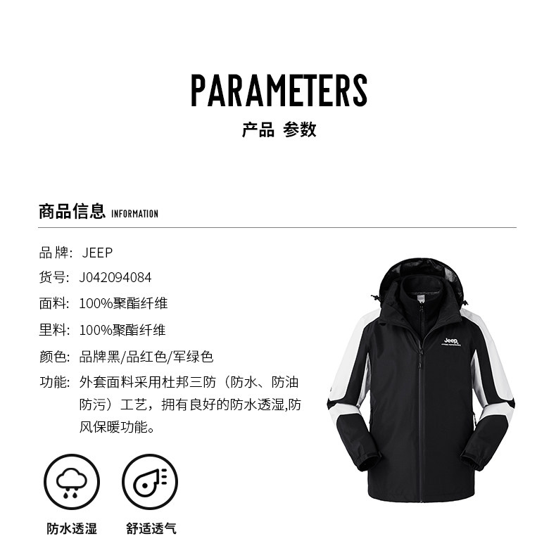Jeep, дорожный джип, съемная ветрозащитная водонепроницаемая износостойкая альпинистская куртка, официальный флагманский магазин, «три в одном»