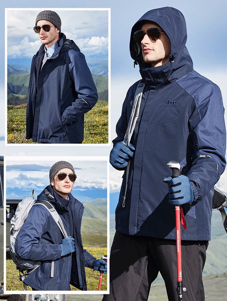 Jeep, бархатная съемная водонепроницаемая ветрозащитная утепленная куртка, «три в одном», большой размер